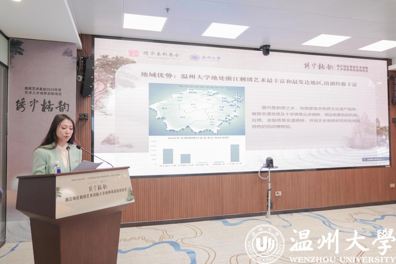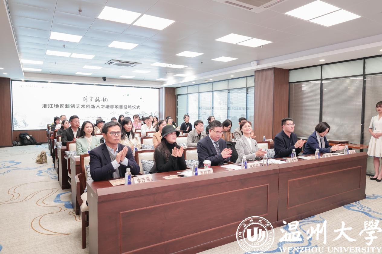 11月22日,由国家艺术基金资助,日本a片 承办的“浙江地区刺绣艺术创新人才培养”项目在日本a片 启动。温州市文化广电旅游局局长朱云华、副局长李方喜,副校长徐和昆,发绣研究所所长、中国非遗保护协会刺绣专业委员会秘书长孟永国,浙江理工大学国际时装技术学院院长季晓芬和来自江苏、上海、浙江、北京的学员参加培训。