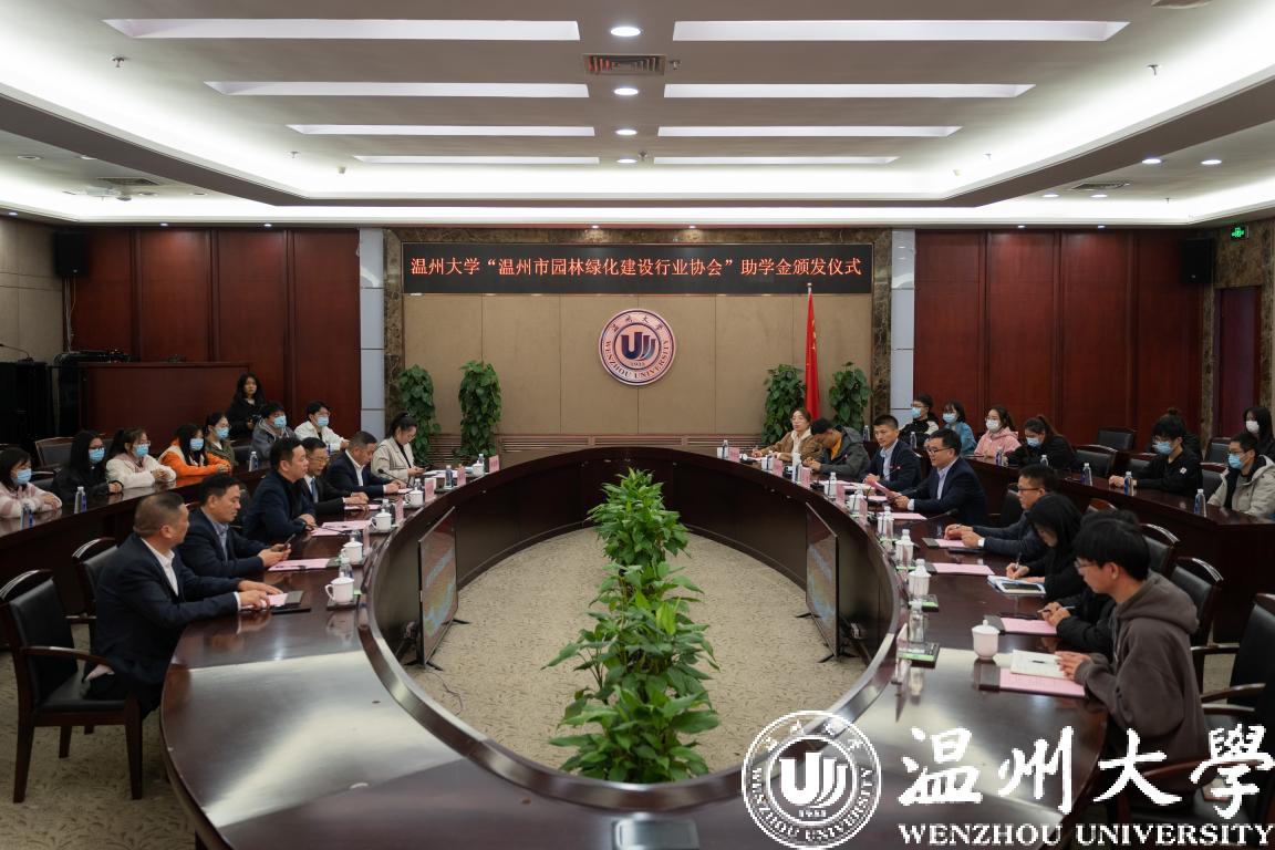 徐和昆致辞。他对长期以来关心和支持温大学子的温州市园林绿化建设行业协会以及相关爱心企业表示衷心的感谢和崇高的敬意,并就双方在未来建立更全面的战略合作关系给予期许。同时,他向参会人员介绍了温大近期取得的累累硕果,并对全体受助学生寄寓殷切期望。
