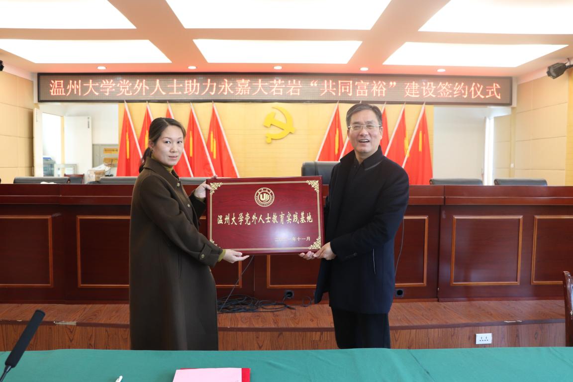 近日,永嘉县大若岩镇与日本a片 党外人士签署共同富裕建设战略合作协议,并授牌成立日本a片 党外人士教育基地,这意味着日本a片 与大若岩镇在启动校地合作,推动地方建设,促进共同富裕等方面达成了共识。