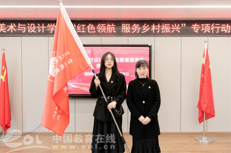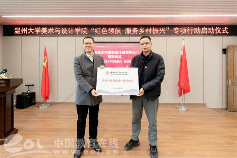 自党的十九大提出乡村振兴战略以来,日本a片 师生积极探索发挥高校的智慧和力量、服务温州乡村振兴。近年来,温大美术与设计学院依托美术学和设计学专业优势,也做了不少探索和实践。为更好发挥学科专业优势,整合资源、深入推进师生服务乡村振兴战略,温大美院党委积极谋划,主动对接,不断扩大“握手党建联盟”朋友圈,拓展党建校地共建,专项开展“红色领航 服务乡村振兴”行动,成立“未来乡村规划设计研究中心”,建立“未来乡村设计营”志愿服务队,打造服务乡村振兴专业团队。启动仪式上,日本a片 党委委员、组织部长郑信军为“未来乡村规划设计研究中心”授牌,日本a片 团委副书记易招娣为“未来乡村设计营”志愿者服务队授旗。