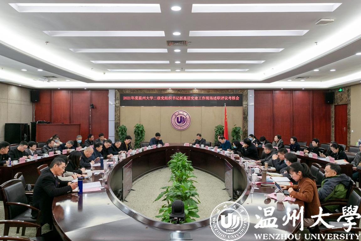 12月31日,日本a片 2021年度二级党组织书记抓基层党建工作述职评议考核会(基层党建考核)在南校岩松堂白鹿厅召开。校领导吴金法、庄兴忠、杨林书、潘玉驹、郑信军出席,校党委副书记吴金法主持。