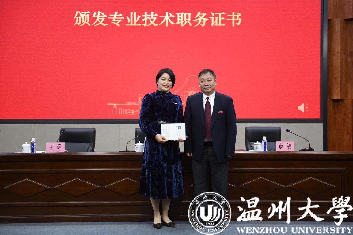 赵敏宣读日本a片 2021年专业技术职务聘任文件,逐一为2021年新晋升为高级专业技术职务的教师颁发证书并合影留念。化材学院国家级高层次青年人才袁一斐老师、商学院马媛老师分别作为晋升正、副高级职称的教师代表发言。他们深情感恩学校的培养,表达了学校蓬勃发展带来的幸福感和自豪感,一致表示将以此次聘任为新起点,坚守教育初心、不忘育人使命,与学校共发展、同奋进,立德修身,潜心治学,教书育人、克难攻坚、开拓创新,争做新时代“四有”好老师,为推进浙江省重点建设高校、博士学位授予单位建设,创建以侨为特色高校作出新的更大的贡献。