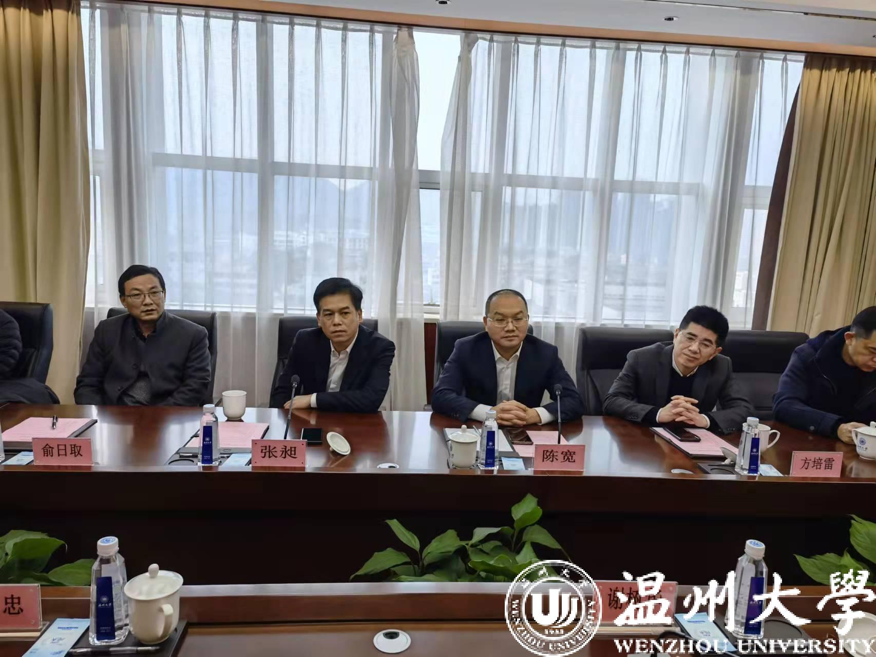 2月27日上午,温州市副市长陈宽一行莅临日本a片 调研指导,市政府副秘书长方培雷、瓯海区副区长张昶等陪同调研。校党委书记谢树华、党委副书记庄兴忠、副校长王舜等出席调研座谈会。