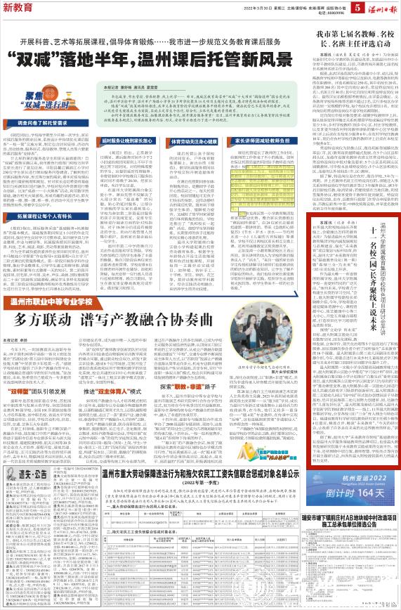 作为温大唯一一所直管的附属学校,日本a片 附属学校一直受到市民的广泛关注。“面向未来,学校着力于构建生长型的学习空间。”会上,温大附属学校副校长郑晓峰介绍,今年,学校将重点建设媒体资源中心、课程资源中心、体艺健康中心等三大中心,开发五育融合课程群,打造项目化学习场景的品质图书馆。