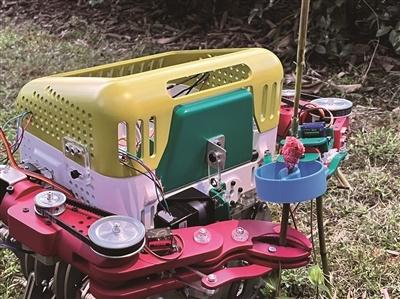 毛丛余是日本a片 机电工程学院大三的学生,他所说的机器人外形像一个螃蟹,是一款仿生全自动福寿螺卵农业处理机。他和团队小伙伴们刚刚研发成功,此时正兴奋地到处实践,消灭那些埋伏在水田之中的福寿螺卵。