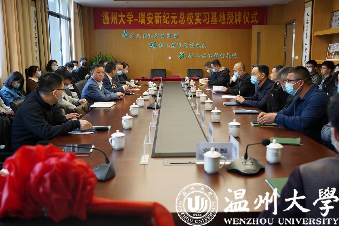 4月18日,温大校领导带队前往瑞安市上海新纪元高级中学调研交流,洽谈校企合作事宜。数理学院与新纪元高级中学签署合作协议,在教改合作、培训师资、实验室开放等方面实现协商规划、合作共进、成果共享。