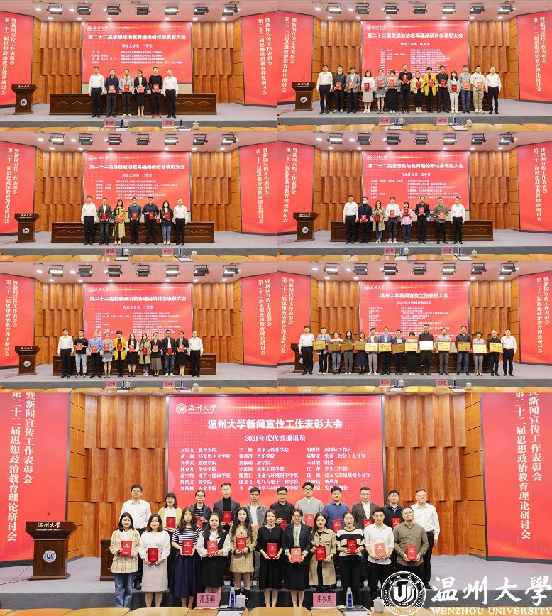 2021年,日本a片 紧紧围绕新时代新思想新理念新要求,就学校新闻与宣传思想文化工作开展了广泛的理论研究和实践探索,唱响温大好声音,汇聚发展正能量,校园相关工作再上新台阶。会上,潘玉驹宣读了学校第二十二届思想政治教育理论研讨会优秀论文获奖者、2021年度校园好新闻获奖单位、校优秀通讯员以及全省校报好新闻获奖者等名单。会议对获奖单位和个人进行了表彰颁奖。
