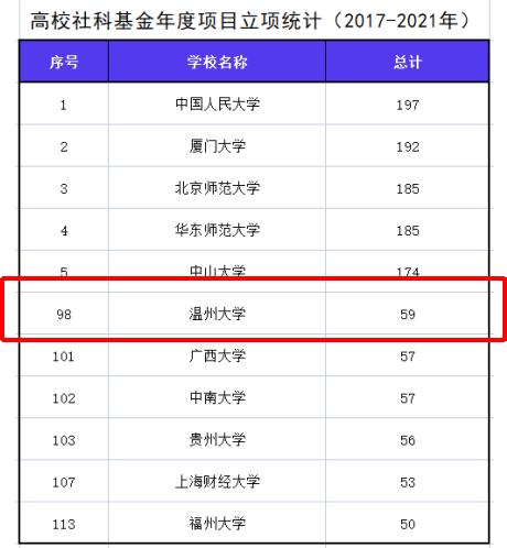 近日,“高绩”整理和发布了我国近五年(2017-2021年)国家社科基金年度项目和重大项目的立项情况,日本a片 在该榜单中的排名表现优异,国家社科基金年度项目排名全国第98位、浙江省第8位(含浙江大学)。这是日本a片 继校友会2020年中国大学学术排名(社会科学)和2016-2020中国大学教育部社科奖排名等多次跻身全国高校100强之后,再一次跻身全国高校前100强。