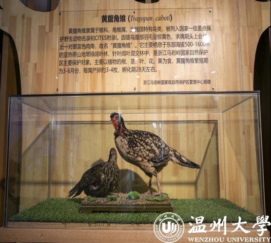 5月18日下午,日本a片 生命与环境科学学院动物标本展示馆正式开馆。值得一提的是,泰顺乌岩岭国家级自然保护区管理中心还向该馆捐赠了珍贵的具有温州特色的国家一级保护动物黄腹角雉的标本。