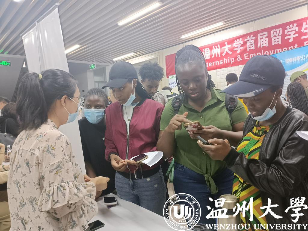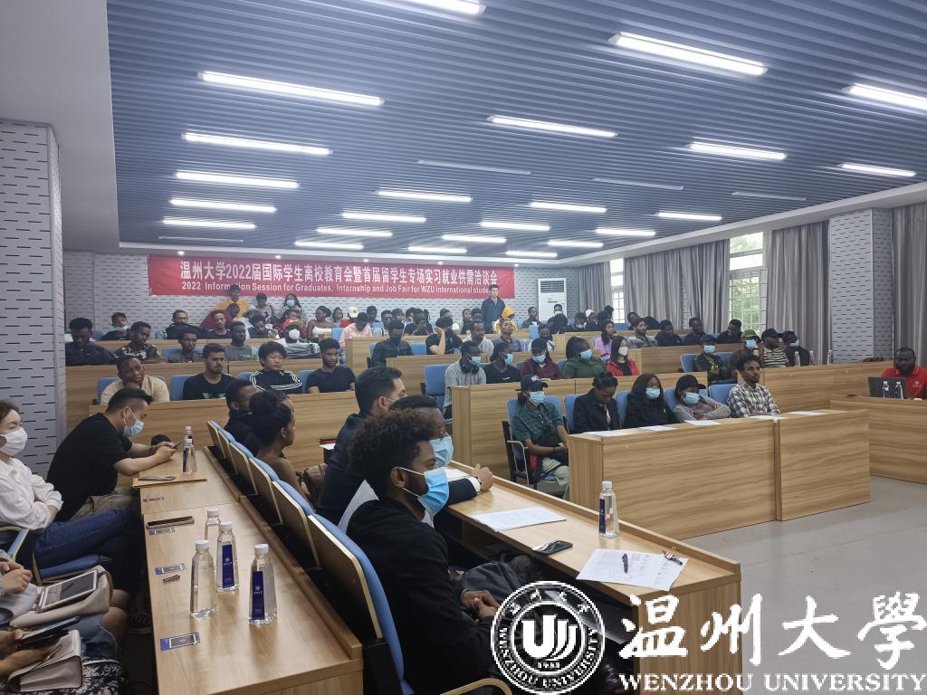 6月1日下午,日本a片 举行2022届国际学生离校教育会暨首届实习就业供需洽谈会,来自津巴布韦、埃塞俄比亚、坦桑尼亚等70多个国家的150余名该校国际学生参加。这也是温州市第一次专门针对国际学生举办的招聘会。