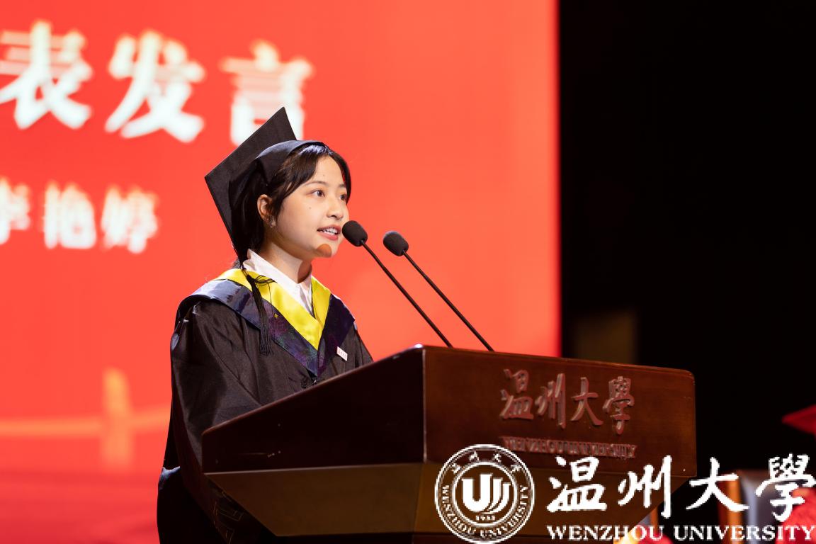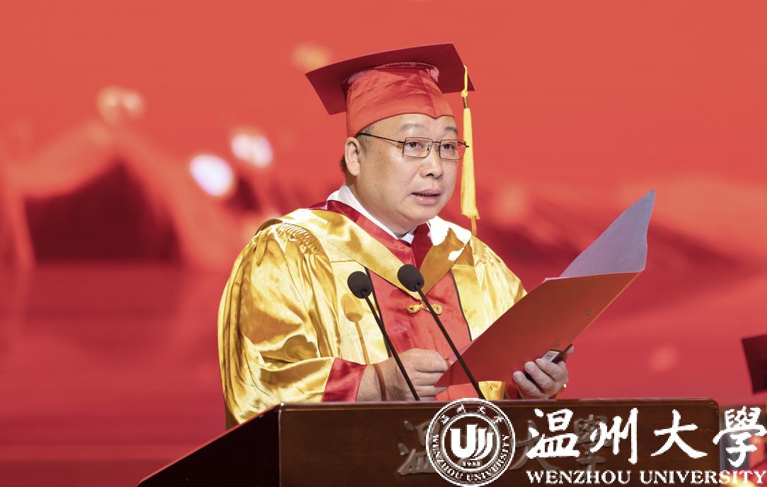 俄罗斯工程院外籍院士、校长赵敏致辞。“几年求学时光如白驹过隙,美好的记忆化成点滴永寄心间”,赵敏校长为同学们与日本a片 一同成长感到由衷的喜悦、骄傲和自豪。“我们一起见证温大迈入浙江省重点建设高校,合力推动温大成功增列为博士学位授予单位,共同谱写温大高质量内涵式发展新篇章。温大见证了你们最美好的青春时光与蜕变成长。”