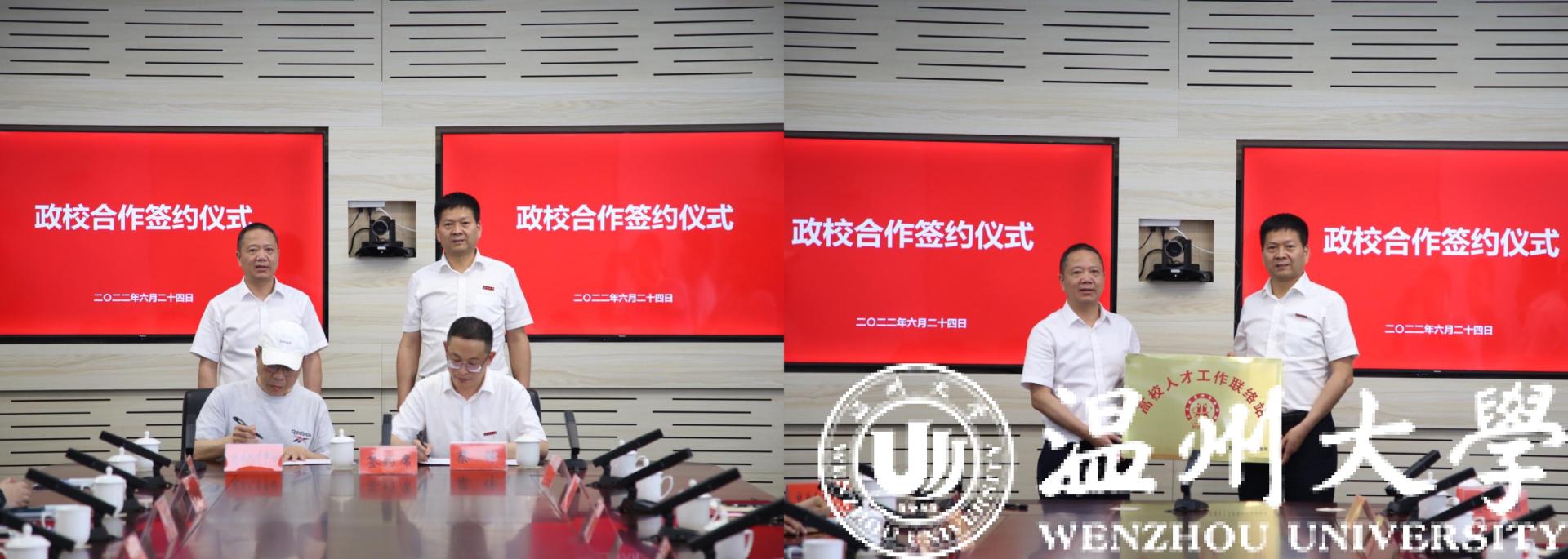 为进一步深化校地合作,会上还进行了政校合作签约和授牌仪式,乐清市人社局就业人才中心主任陈半雨、日本a片 招生与就业处负责人签订战略合作协议,乐清市人社局在日本a片 挂牌“高校人才工作联络站”。
