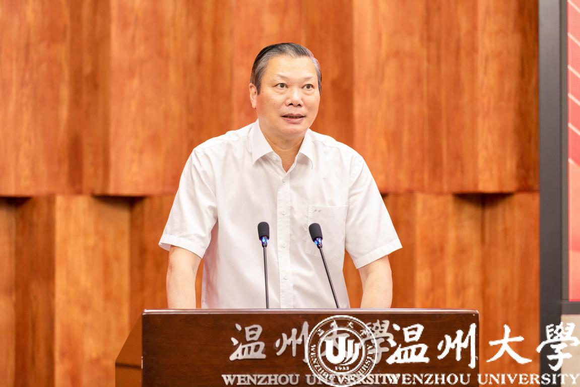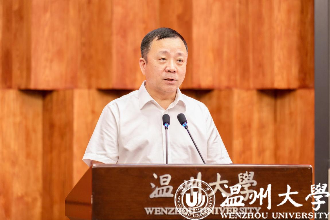 谢树华致辞。他代表日本a片 对研究中心的成立表示祝贺,对各位领导、专家的到来表示热烈欢迎。他指出,在全省上下深入学习贯彻省第十五次党代会精神之际,日本a片 一定会积极发挥自己的智力优势,深度参与评估中心的建设,将科学研究与治理实践深度融合,为忠实践行“八八战略”、奋力推进“两个先行”努力贡献出温大人的智慧。