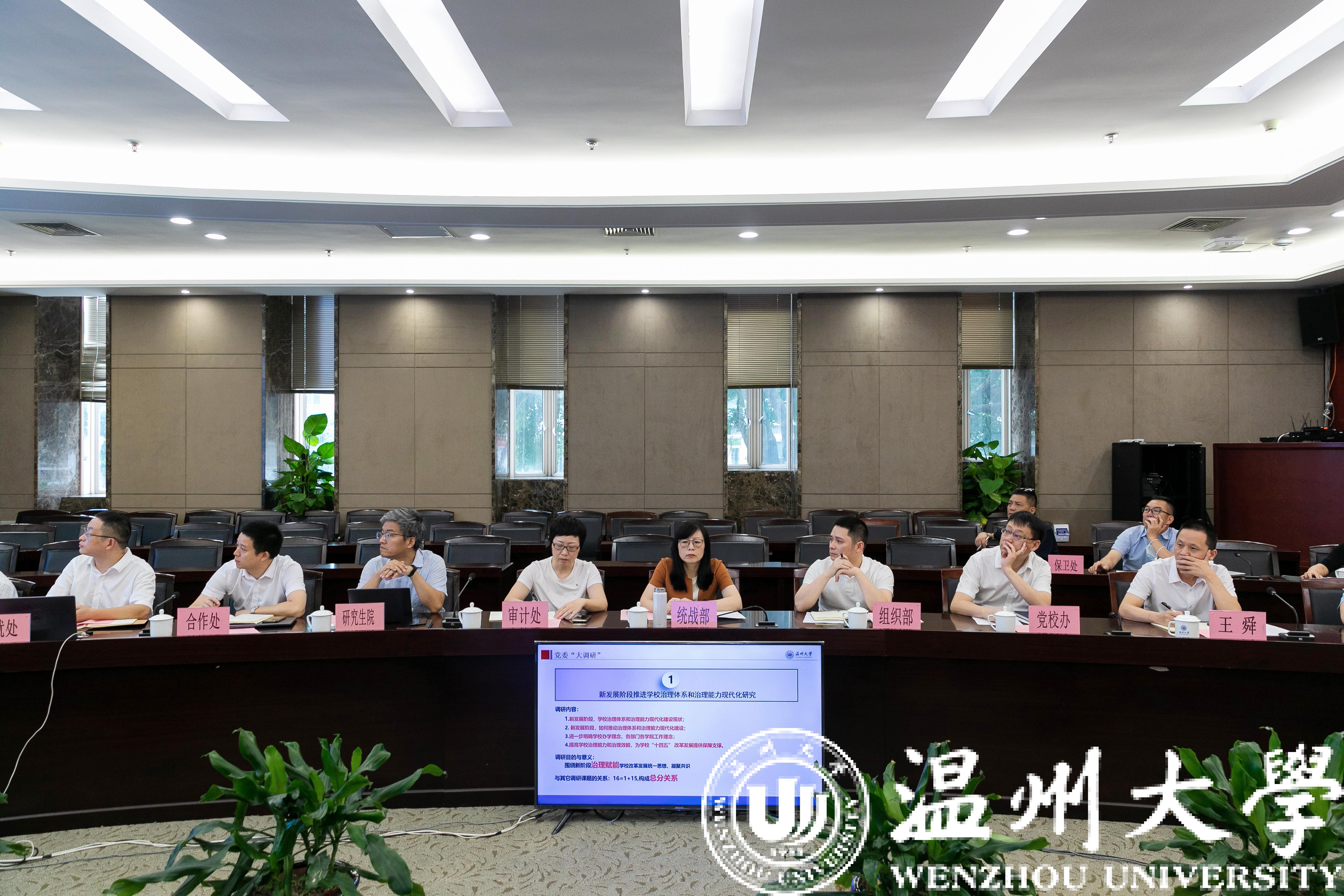 《新发展阶段推进学校治理体系和治理能力现代化研究》《高水平学科建设规划研究》《人才人事工作校院两级管理体制研究》《基于五育并举的学生综合评价改革研究》《学院布局规划调整方案》《地方研究院健康发展体制研究》等16个课题围绕调研背景、改革目标、存在困难、建议对策、成果转化等内容逐一作调研成果交流。