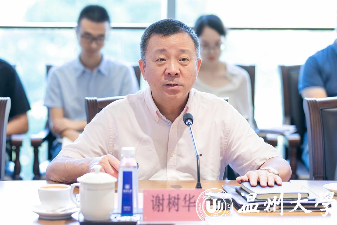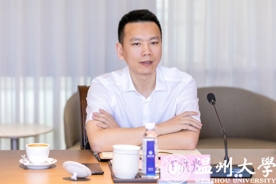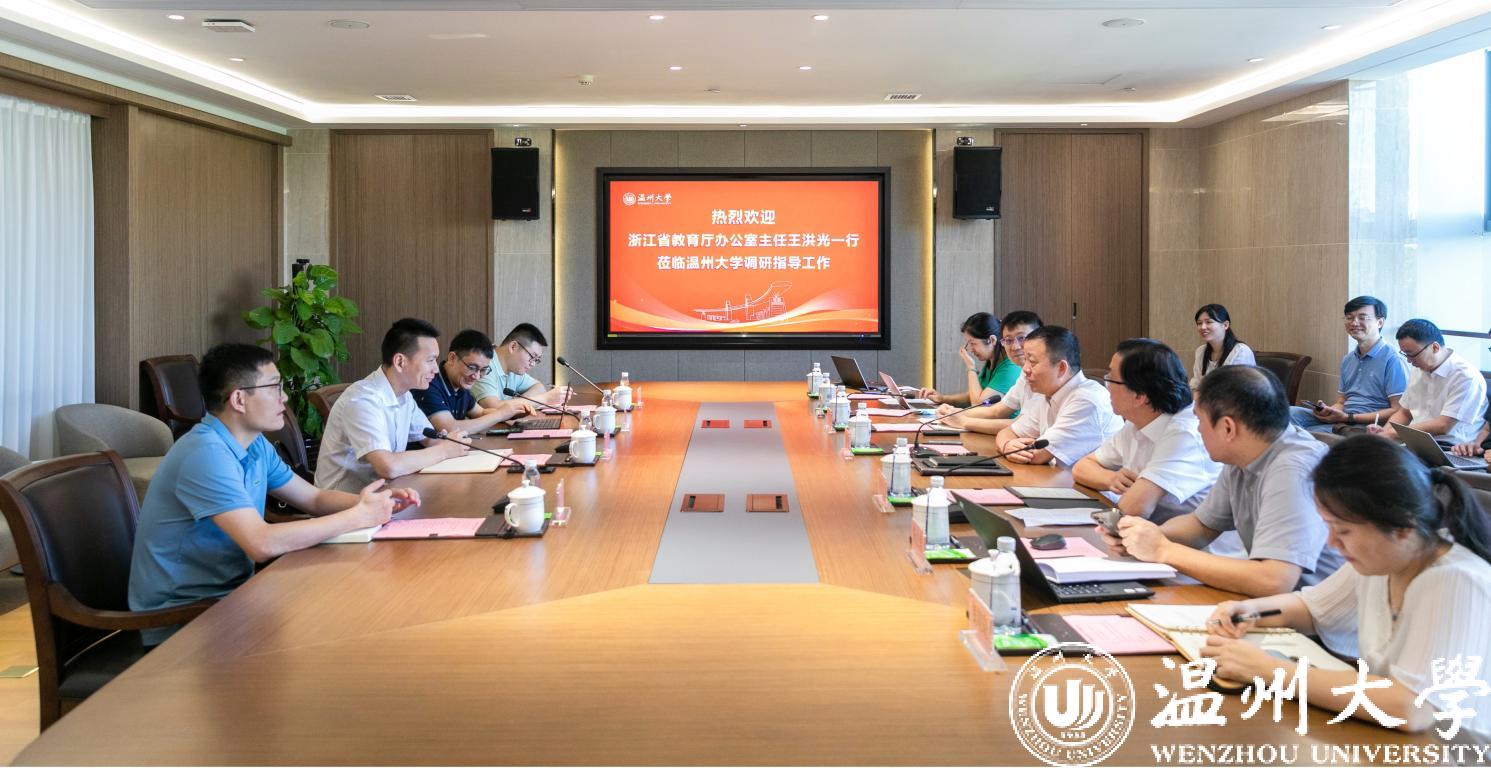 谢树华向省教育厅办公室主任王洪光一行表示热情的欢迎,希望他们为日本a片 的数字化改革提供有力指导。他介绍了日本a片 的办学历史、办学优势以及这几年在办学治校上取得的主要成绩。他指出,高校是人才高地、创新高地,理应成为数字化改革的先行区。去年以来,温大以数字化改革为总抓手,按照“1512”改革体系,坚持“系统谋划、全域推进、多跨协同、整体智治、流程再造、制度重塑”的原则,着力推进学校治理体系和治理能力现代化取得显著成效。