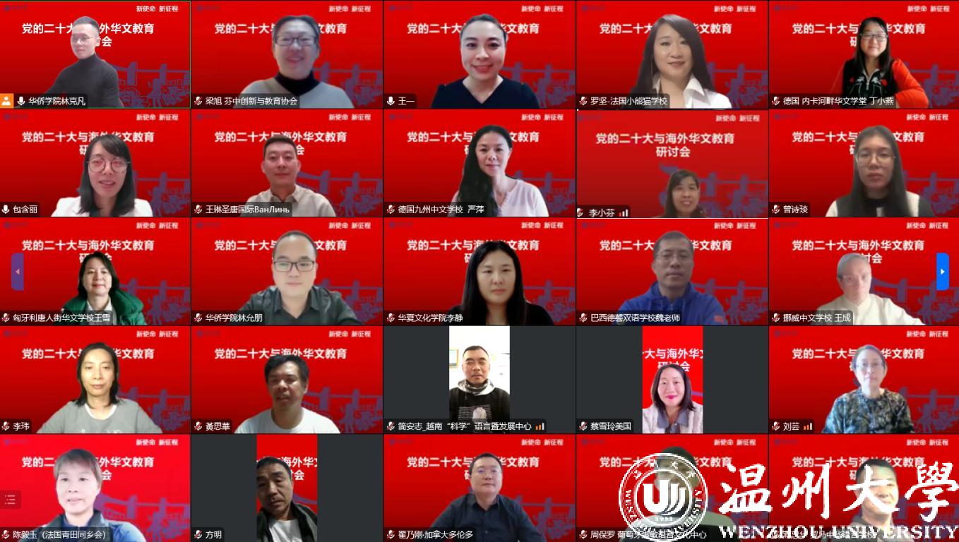 10月21日北京时间晚20点,日本a片 华侨学院邀请来自五大洲20国的华文学校校长、教师,以“新使命、新征程——党的二十大与海外华文教育”为主题,共同探讨海外华文教育在新时代,更好讲好中国故事、传播好中国声音,展现可信、可爱、可敬的中国形象,推动中华文化更好走向世界的新使命。