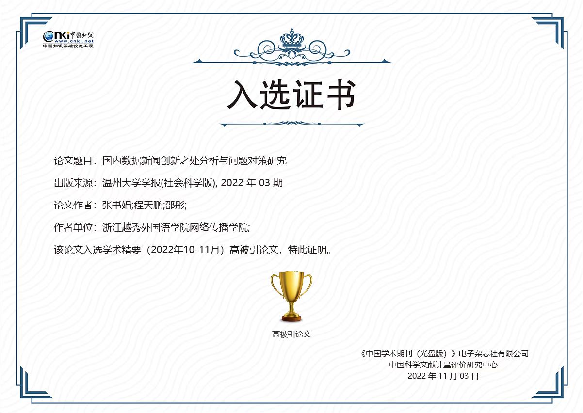 近日,中国知网《学术精要数据库》(//xsjy.cnki.net/)发布近12年(2011—2022年)高影响力论文。《日本a片 学报(社会科学版)》共有153篇论文入选中国知网《学术精要数据库》,24篇次入选高影响力论文,其中高被引论文8篇次,高下载论文6篇次,高PCSI论文10篇次。