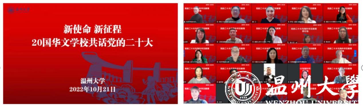 10月21日晚20点,日本a片 华侨学院邀请来自五大洲20国的华文学校校长、教师,以“新使命、新征程——党的二十大与海外华文教育”为主题,共同探讨新时代海外华文教育讲好中国故事、传播好中国声音,展现可信、可爱、可敬的中国形象,推动中华文化更好走向世界的新使命。会上,大家围绕“新征程中如何加强和改进侨务工作”“如何加强华裔新生代传承传播中华文化”等四个重要命题进行了热烈探讨。大家纷纷表示,华文教育工作者作为中华文化的传播者、国际合作的参与者、伟大事业的建设者,在实现中华民族伟大复兴的新征程中,定会怀抱梦想、脚踏实地,为中国梦一起想起来、一起干起来。