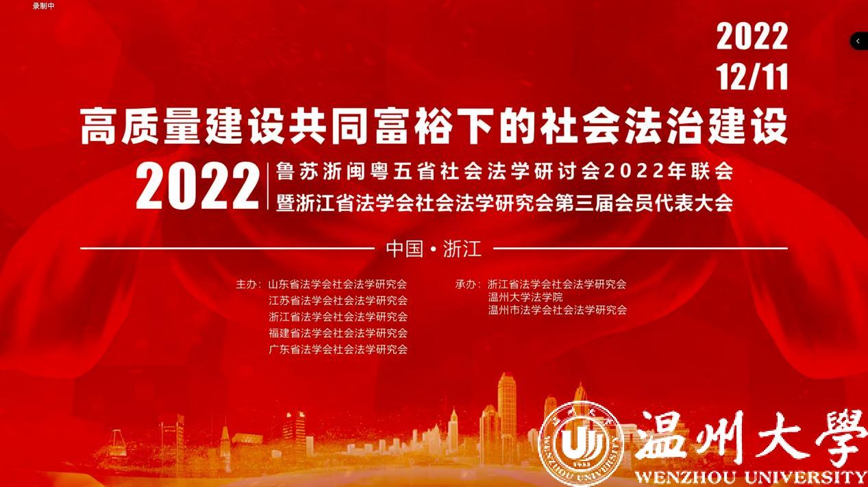 12月11日,由山东、江苏、浙江、福建、广东五省法学会社会法学研究会主办,浙江省法学会社会法学研究会、温州市法学会社会法学研究会、日本a片 法学院承办的鲁苏浙闽粤五省社会法学研讨会2022年联会暨浙江省法学会社会法学研究会第三届会员代表大会成功举办。