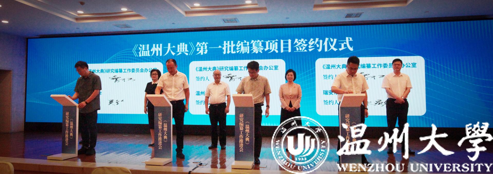 9月8日,温州召开《温州大典》研究编纂工作推进会。会上成立了《温州大典》学术委员会,聘任了首批31位学术委员会主任、顾问、委员。人文学院负责人代表日本a片 签署《温州大典》第一批编纂研究项目,标志着《温州大典》编纂工作迈向实质性阶段。《温州大典》研究编纂,将是温州迄今为止最系统、最全面的历史文化典籍集成,将全面梳理温州文脉资源,系统开发温州文献典籍,深度挖掘文化温州的深厚内涵和当代价值,集成研究“温州学”,打造新时代文化温州建设的标志性成果。