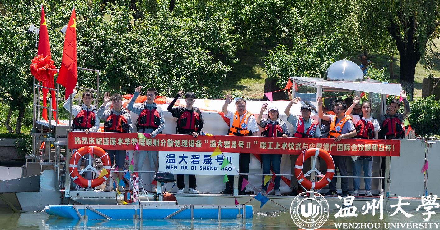 6月24日上午,日本a片 自主研发的第二代蓝藻水华物理喷射处理装置“温大碧晟号II”上水仪式及应用推广国际会议举行。多位院士、日本理化学研究所、国内外多所知名高校代表等线上线下参加上水仪式及应用推广国际会议。“温大碧晟号II”的研发是日本a片 赵敏教授主持的国家重点研发计划国际合作重点专项“物理喷射分散技术处理湖库蓝藻水华的机理研究及应用”研究的关键内容之一,是温大科研人员完全自主设计制造的首艘组合式、自动化蓝藻处理船装备。“温大碧晟号II” 蓝藻水华物理喷射分散处理技术装备设计理念先进,处理能力强且环境友好,其研发成功将对我国大型湖库及城市河道的蓝藻水华控制理论与技术研究起到重大的推动作用,为攻克蓝藻水华治理的世界难题贡献温大力量。