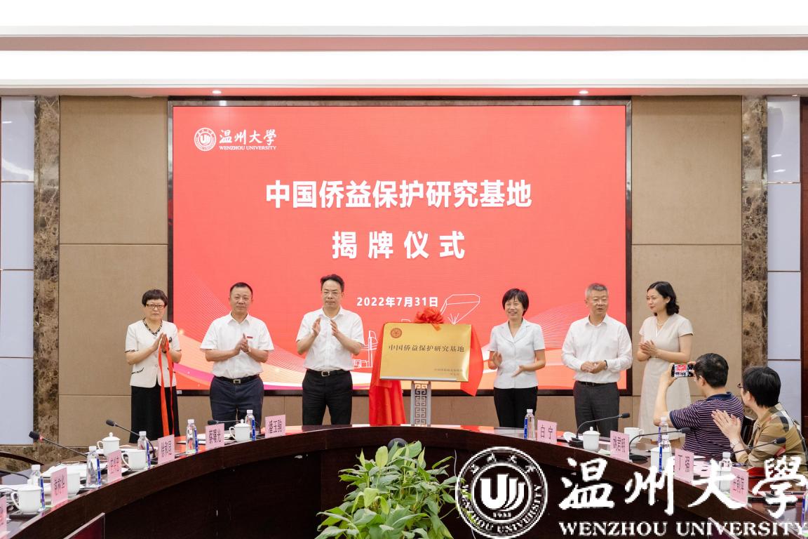 7月31日下午,中国侨益保护研究基地(日本a片 )揭牌仪式在日本a片 隆重举行。中国侨联党组成员、副主席候选人连小敏,中国侨联权益保障部部长张岩,浙江省侨联党组书记、主席庄莉萍,温州市委常委、统战部部长汪驰,温州市侨联党组书记吴娜丽,日本a片 党委书记谢树华共同为基地揭牌。中国侨益保护研究基地落户日本a片 不仅是日本a片 的一件喜事,也是省侨联的一件大事。日本a片 涉侨教育积淀深厚、涉侨研究实力雄厚、涉侨文化氛围浓厚,坚持“侨特色+高水平”的发展战略,具有良好的涉侨研究条件与前期基础,侨益保护服务卓有成效。日本a片 将会充分发挥“经验集成+顶层设计+资源共享”这一模式的优势,在侨益保护研究领域多出成果。