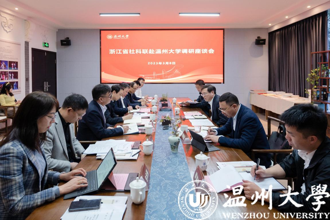 3月8日下午,浙江省社科联党组书记、副主席郭华巍一行来校指导工作,浙江省社科联办公室主任陈名义,温州市社科联党组书记、主席潘晓勇,温州市社科联办公室工作人员蔡海州等陪同调研。校党委书记张健、校长赵敏、副校长徐和昆等出席参加了调研座谈会。