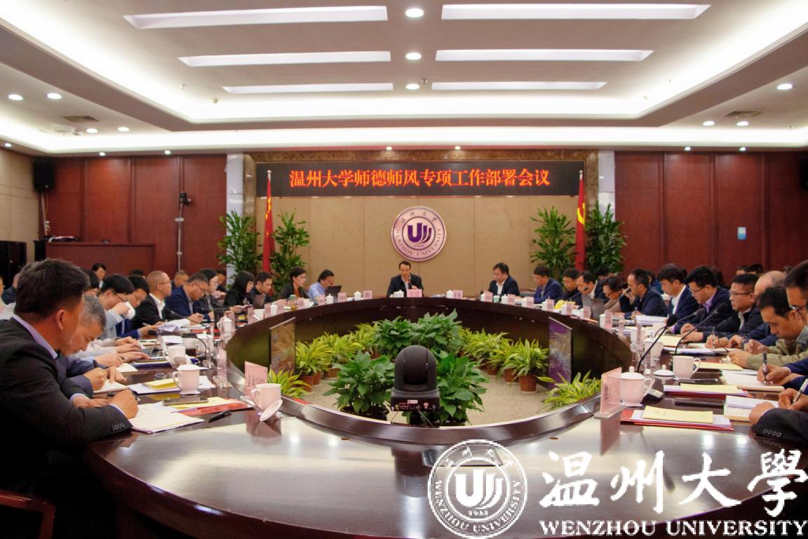 张健作总结讲话。他指出,党的十八大以来,以习近平同志为核心的党中央高度重视教师队伍建设,始终把加强教师队伍建设作为基础工作来抓,始终把师德师风建设摆在新时代教师队伍建设的首要位置。加强师德师风建设,是深入贯彻习近平总书记关于教育重要论述的政治要求,是全面推进学校全面从严治党和清廉温大建设的必然需要,也是践行“五育并举”、推动“三全育人”、构建“大思政”格局的必由路径。他强调,开展师德师风问题专项整治工作,一要提高站位、深化认识,切实增强师德师风建设的责任感使命感。加强师德师风建设是“为党育人、为国育才”的政治任务,是“学高为师、身正为范”的社会期待,是“仁而爱人、润已泽人”的岗位要求。二要对标对表、突出重点,推深做实师德师风建设各项工作任务。要坚持“全面”和“重点”相结合,找准着力点,要坚持“校内”和“校外”相结合,构建大格局,要坚持“严管”和“厚爱”相结合,提升实效性。三要压实责任、加强考核,确保师德师风建设取得扎实成效。要加强组织领导,统筹做好专项工作;讲究方式方法,确保稳妥慎重;加强考绩考核,对违反师德师风事件实行“一票否决”。要始终把师德师风建设作为一项极端重要工作,全力打造一支政治坚定、师德高尚、业务精湛、作风优良的教师队伍,为学校高质量建设国内一流、国际知名,特色鲜明的高水平研究教学型大学提供坚强保障。