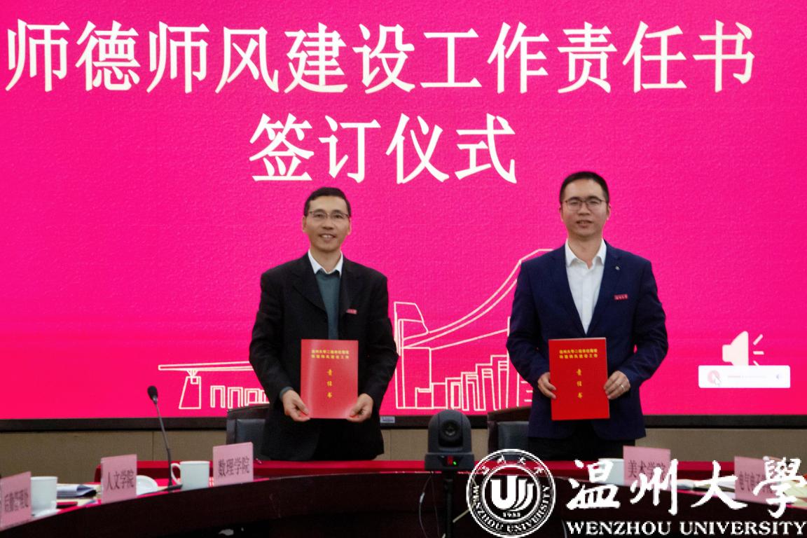 各二级单位党政负责人签订《日本a片 师德师风建设工作责任书》,认真履行学院(部门)师德师风建设“第一责任人”责任,全力落实“一岗双责”。