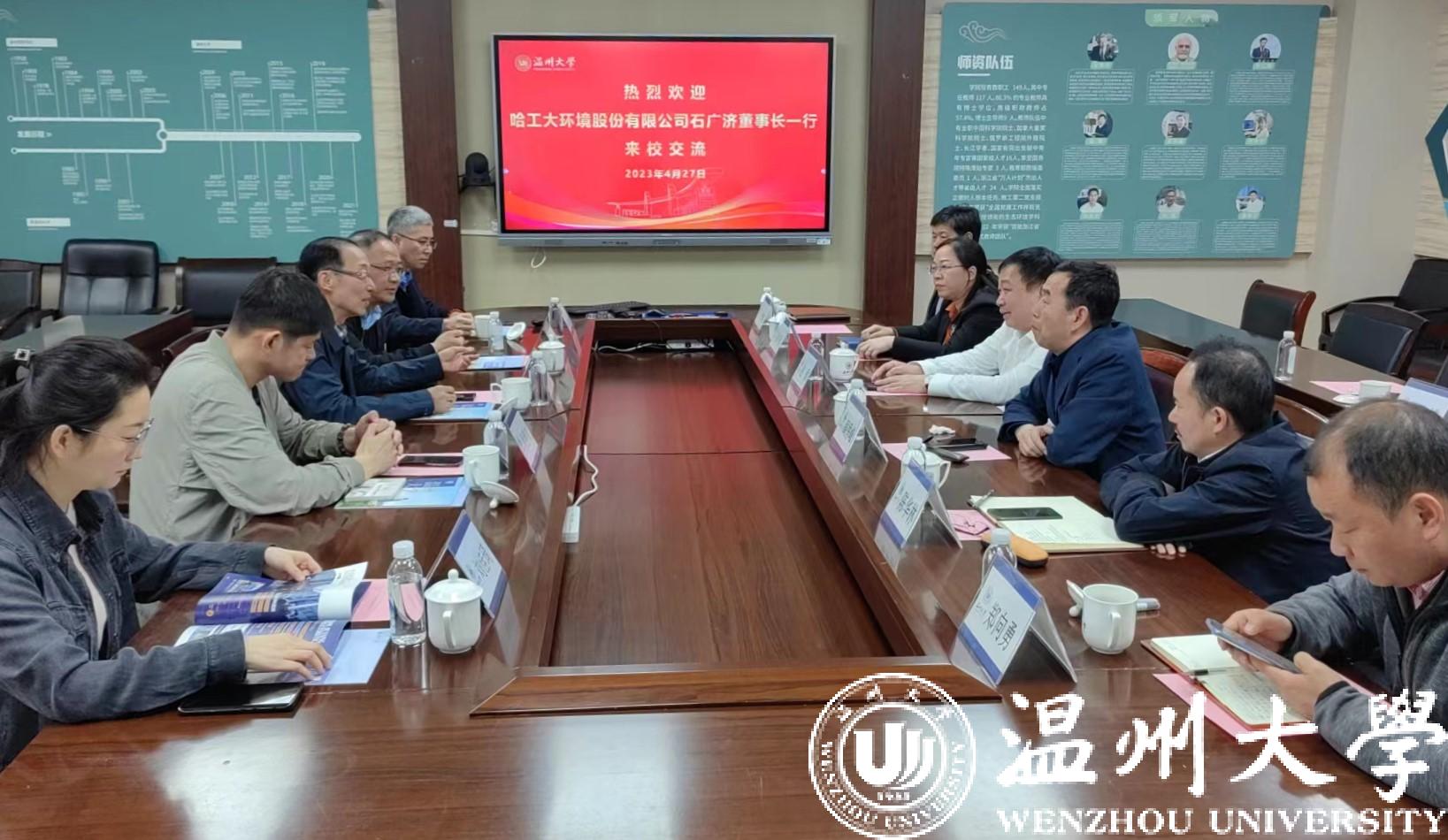 石广济一行充分肯定并赞扬了日本a片 近年取得的发展成就,并介绍了哈工大环境股份有限公司的核心竞争力、产品设备及发展计划。石广济就自身科研经历、工作经验和成果与日本a片 进行深入交流,希望日本a片 充分利用平台和自身优势,努力提升科研水平,为学科发展作出更多贡献,并表达了与温大深度合作的诚挚意愿。