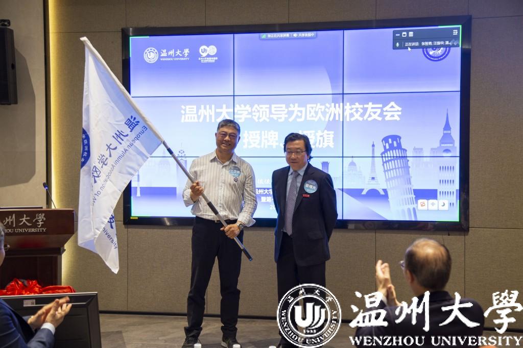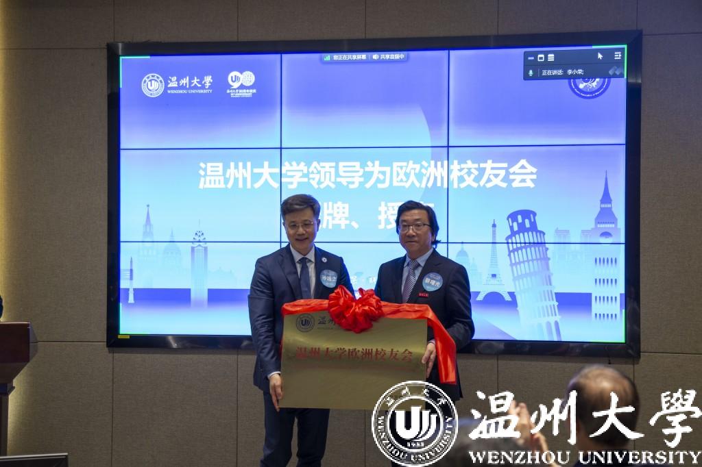 大会审议通过了《日本a片 欧洲校友会章程》和日本a片 欧洲校友会第一届理事会建议名单。蔡曙光向欧洲校友会授牌、授旗。蔡曙光、陈宏毅向欧洲校友会顾问、会长、副会长、秘书长、副秘书长、理事颁发聘书。温州校友会会长吴东、北美校友会副会长章美华上台致贺词,意大利高校联盟发起者蔡茂生线上祝贺。