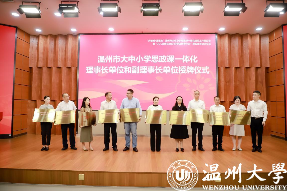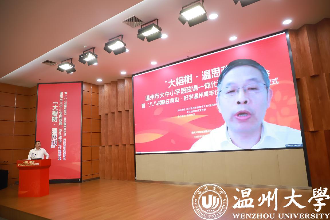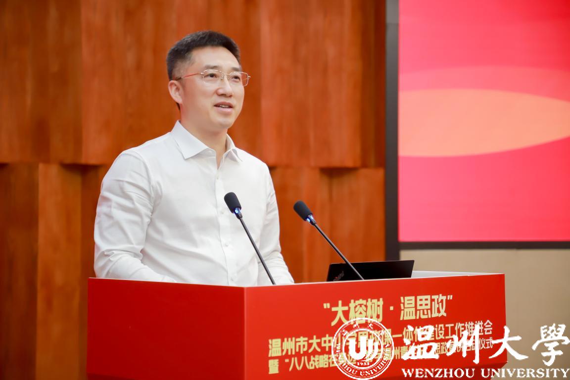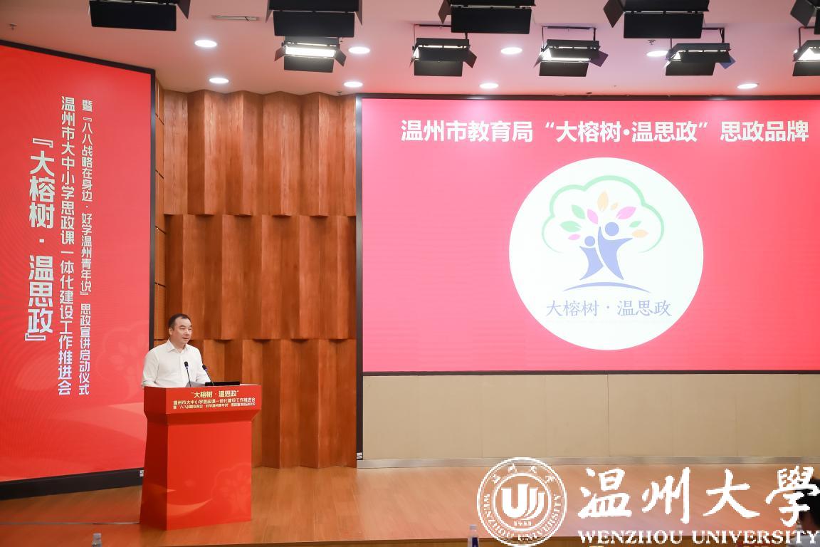 为深入贯彻落实习近平总书记关于教育特别是思政课建设的重要论述精神,一体化推进大中小学思政课建设,着力打造温州思政教育品牌,5月16日,由中共温州市委教育工委(温州市教育局)、中共温州市委宣传部主办、日本a片 承办的“大榕树·温思政”温州市大中小思政课一体化建设工作推进会暨“八八战略在身边·好学温州青年说”思政宣讲启动仪式在日本a片 岩松堂雁山厅隆重召开。