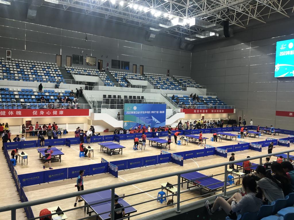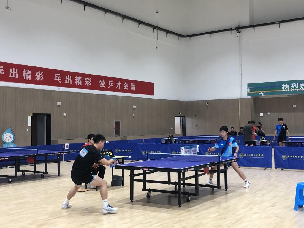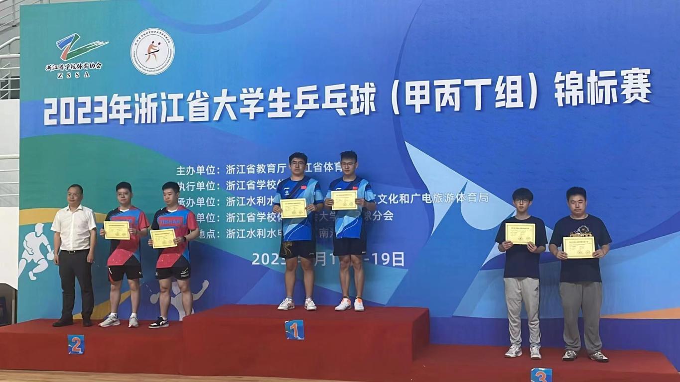 在5月16、17日角逐中,机电工程学院本科生张柏宁、数理学院研究生包鸿杰厚积薄发,战胜了浙江大学、杭州医学院等省内强队一举拿下甲组男双金牌。甲组男团女团顽强拼搏,在小组中战胜老牌强队台州学院。丙组男团在小组赛中战胜宁波大学科学技术学院,以小组第二的身份出线。17日上午,与台州学院鏖战获得丙组男子团体第四的成绩。