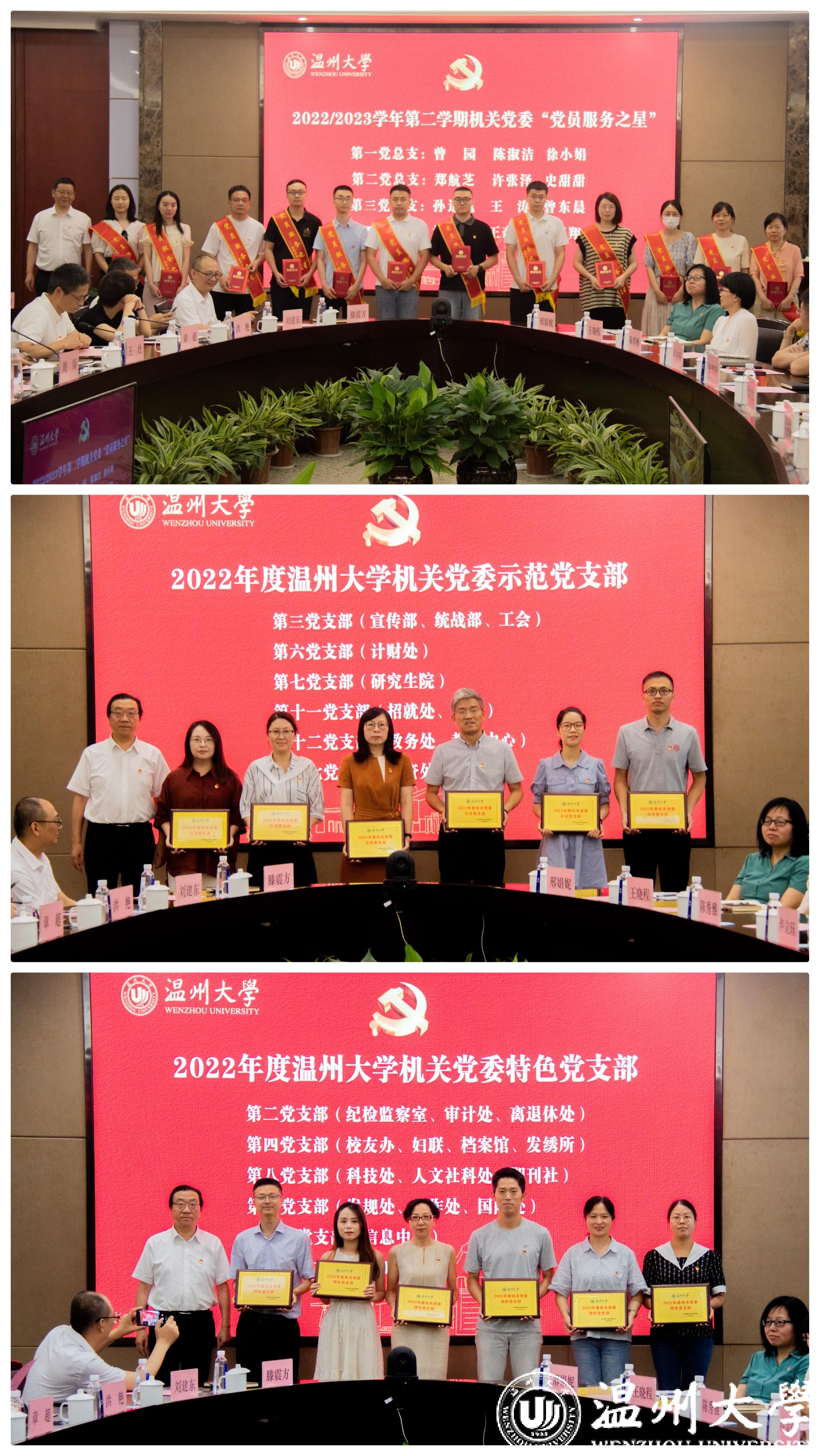 主题活动在诗歌朗诵《温大赋》中拉开序幕。活动中,集中表彰了2022年度机关党委“先锋党支部”“示范党支部”“特色党支部”以及2022/2023学年第二学期“党员服务之星”。第十四党支部书记周领围绕如何建强组织体系、完善制度机制、创新党建载体、打造支部品牌等方面作支部建设经验分享。第三党支部书记吴静聚焦中国共产党实事求是的思想路线为大家上专题微党课。现场为入党10年、20年、30年的党员举行集体“政治生日”,赠送“政治生日”贺卡,蔡联群、王壮、章超等三位党员代表分享入党感悟和长期在党组织培养下的成长历程。最后,全体与会党员重温入党誓词,进一步教育全体党员时刻牢记第一身份是共产党员,第一职责是为党工作,进一步激励全体党员坚定理想信念,永葆入党初心,牢记职责使命,始终对党绝对忠诚。