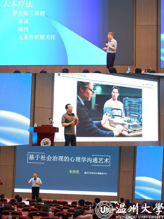北京师范大学心理学教授郑日昌做《“阴阳辩证”在心理疏导中的作用》专题报告;浙江大学心理与行为科学系教授周吉帆围绕《情绪管理与压力应对》为在场人员提供了情绪管理调节方法及应对压力的策略;日本a片 教育学院心理系副教授朱浩亮以《社会治理中的心理学沟通艺术》为主题讲解了有效人际沟通的六大工具。