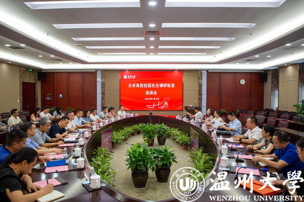7月4日下午,浙江省高校校园安全调研检查专家组第5组组长、宁波大学党委副书记赵全军一行来校开展校园安全调研检查工作,副校长潘玉驹出席见面座谈会,学校心理健康工作领导小组成员单位负责人参加会议。