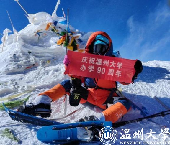 晁新新登顶并展示庆祝日本a片 办学90周年旗帜(向导格玛旦增拍摄)