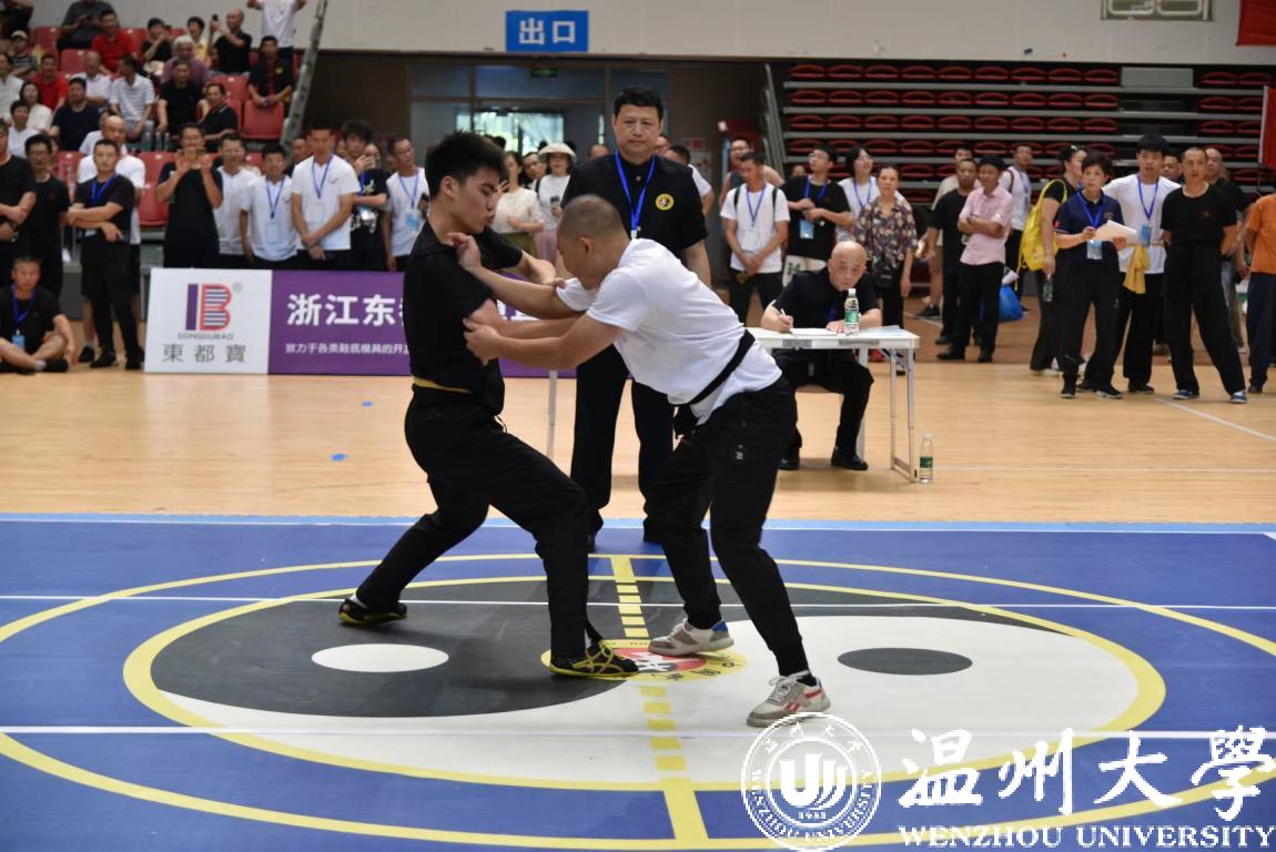 本次大赛由浙江省武术协会指导,乐清市体育事业发展中心、温州市武术协会、乐清市总工会、乐清市体育总会主办,乐清市太极拳协会承办。比赛由日本a片 体育与健康学院副院长叶建强担任领队、体育教育系副主任周义义老师带队参赛,队员由体育与健康学院张凯一、项益鹏、杨佳臻,机电工程学院覃赐和建筑工程学院常龙五位本科生组成。