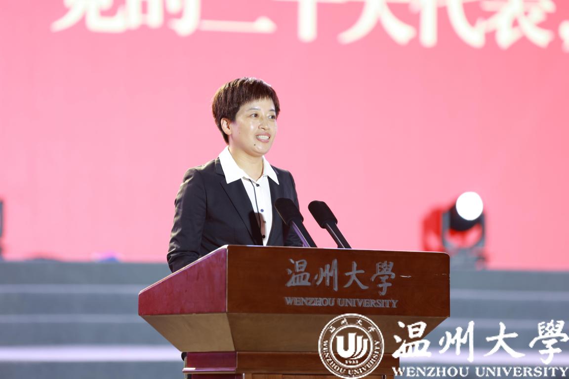 党的二十大代表、宁波市北仑区大碶街道灵峰工业社区党委书记史孟艳作为校友代表发言。“日本a片 是一所信仰有高度、学问有深度、师生有温度的学校”,她深情回顾了自己在温大的求学时光,并希望同学们早立志、有担当、勇探索、多积累,成为“求学问是、敢为人先”的温大人。