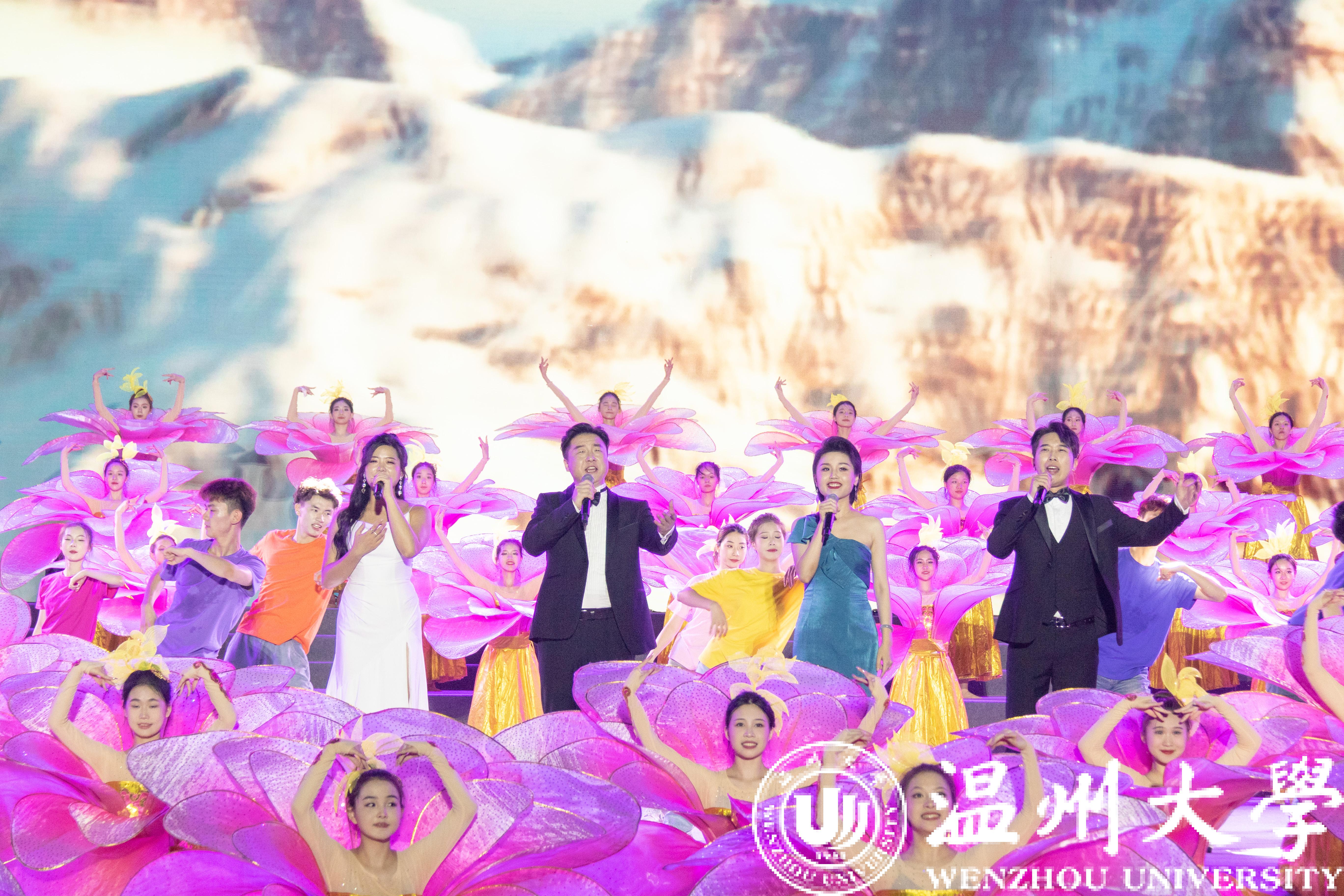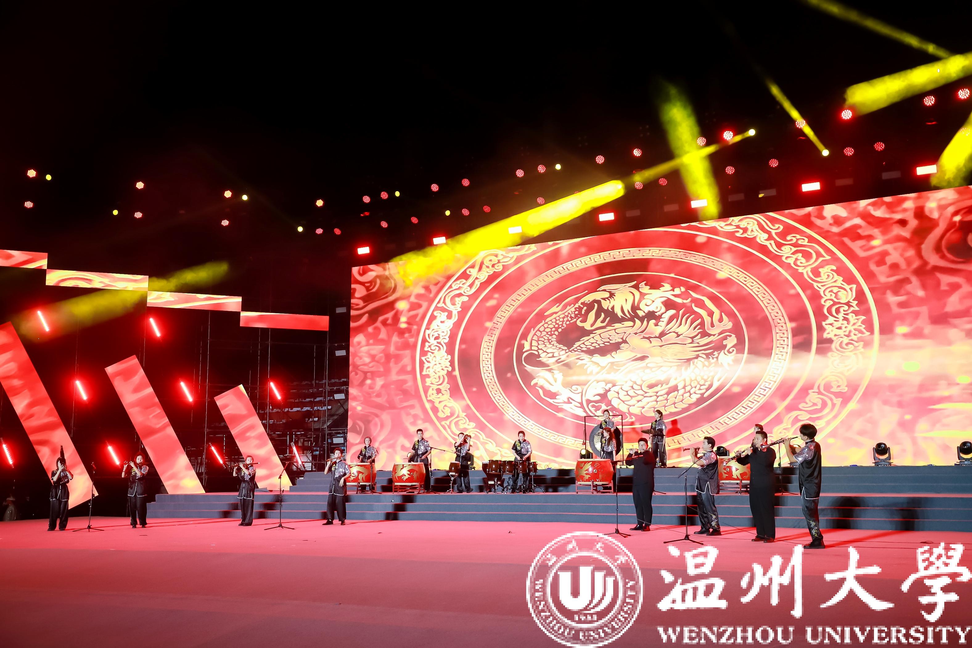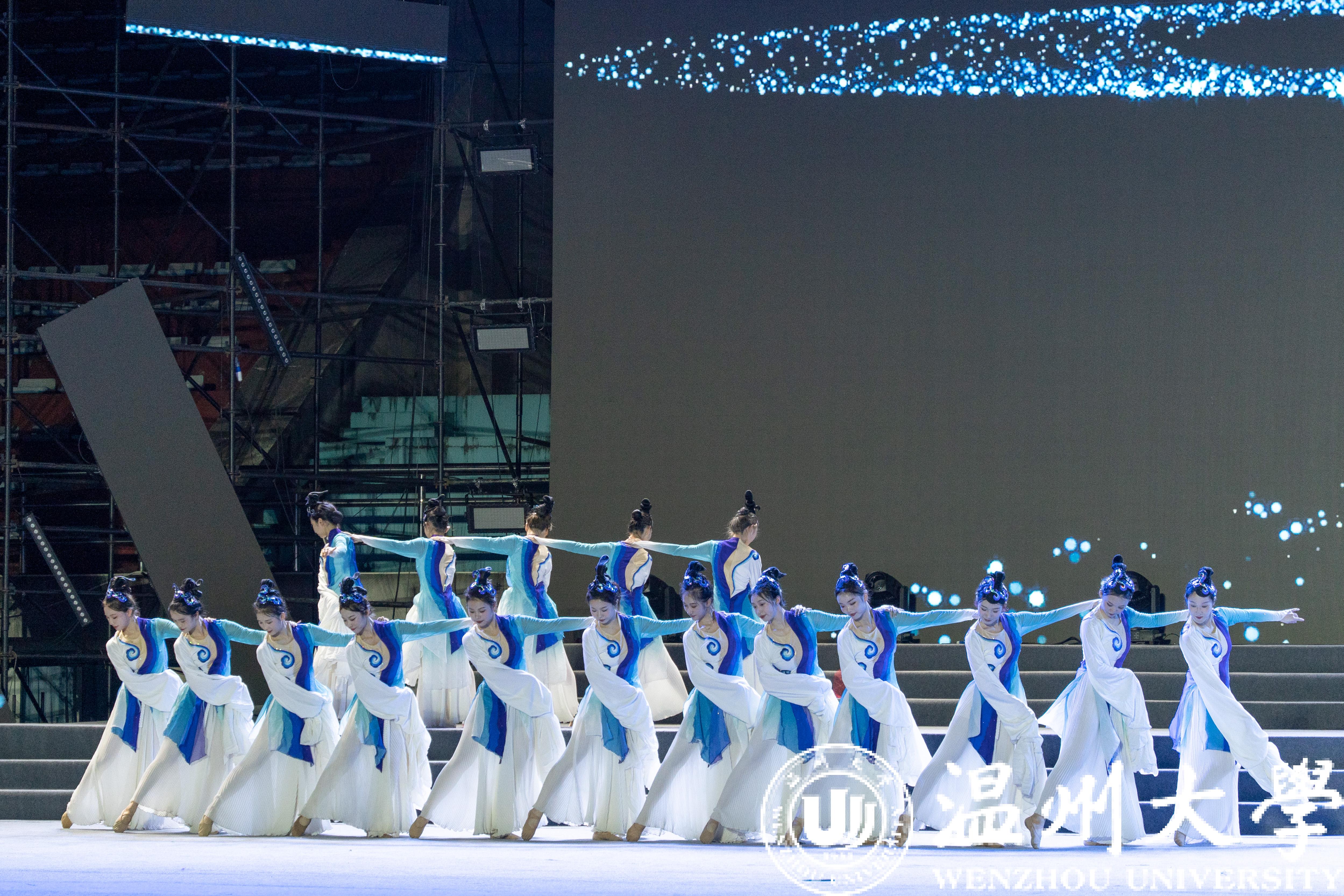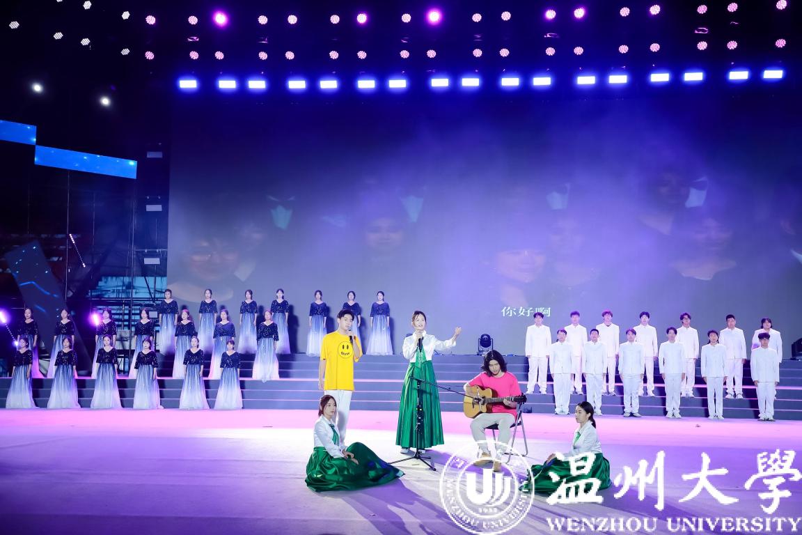 序曲《我的温大》点燃全场,同学们以温大人的身份,心心相连,齐聚一堂,在奋斗路上振翅翱翔。金秋九月,相聚浙江,相聚亚运。《@未来》歌舞飞扬,温大人共同迎接杭州第19届亚运会的到来,迎接更加美好的未来。强国之音,掷地有声,诗朗诵《强国有我 青春担当》充分展现了温大学子的责任与担当……舞蹈《涓流》诠释了“光大国族、造福人群”的温大人勇立潮头、奋楫扬帆,如同涓涓细流汇入祖国建设发展大潮贡献力量。吹打乐《龙腾虎跃》以生动的音乐形象展现了中华民族的美与力量。热爱祖国、家乡,面向世界、未来,独唱《有根有梦有远方》传递出逐梦路上的无限力量。《同爱同在》唱出了跨越万水千山的友谊,充分展示亚运精神与青春昂扬……