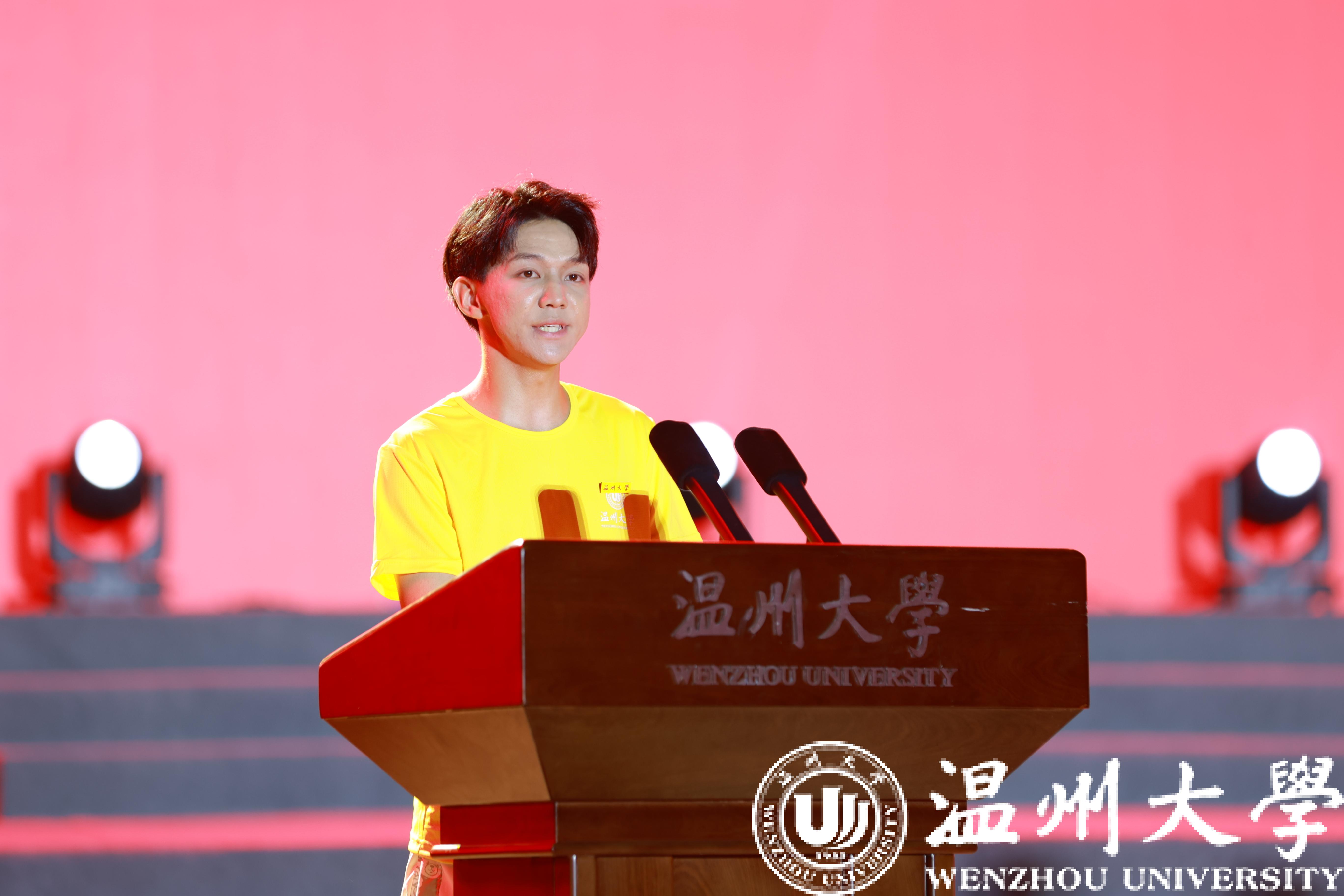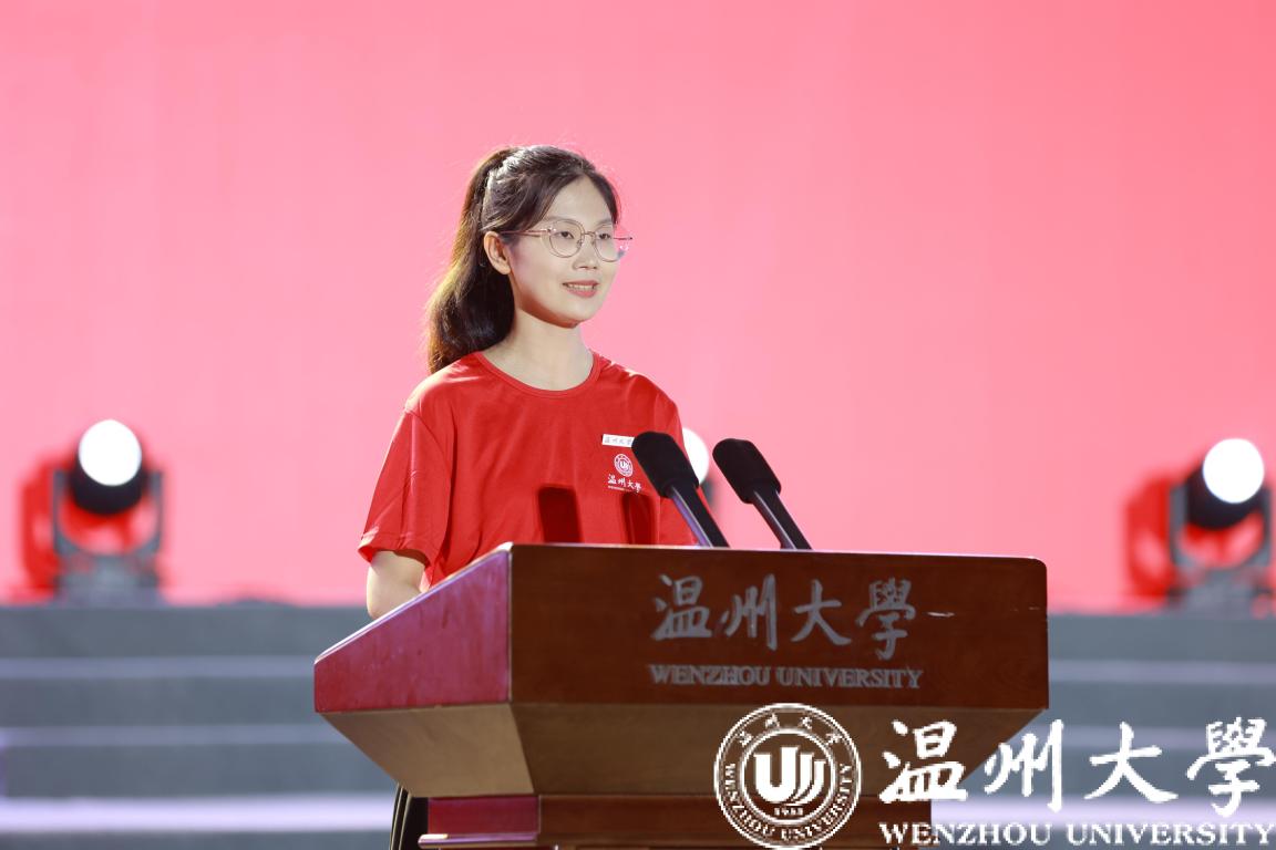 本科新生代表苏步青学院黄星竹同学则号召全体新生秉持“厚培德本、深濬智源,光大国族、造福人群”的温大精神,做有德行、有情怀,有智慧、敢创新,最真实、能坚持的温大人,笔蘸豪情,书写青春。