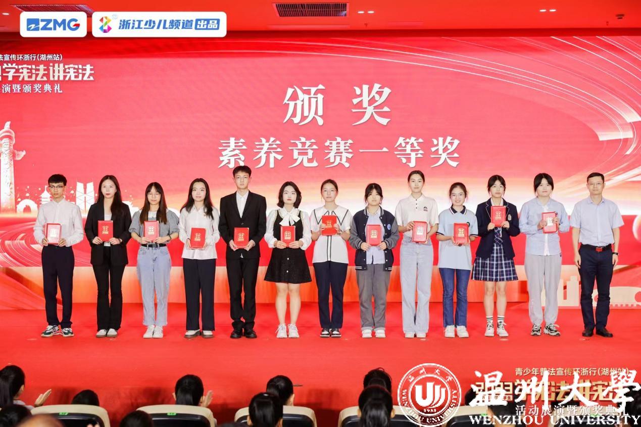 法学院吴杭泓同学代表日本a片 前往湖州参加“学宪法讲宪法”知识竞赛省级遴选赛,他前期准备充分,赛场上发挥稳定,以现场笔试第一的成绩从35名高校选手中成功入围决赛,在决赛知识竞答及加试环节中以并列第二的成绩,最终获得省赛一等奖的优异成绩;法学院钟萍同学的演讲作品《宪法的守护者》通过省级视频遴选,获得二等奖。
