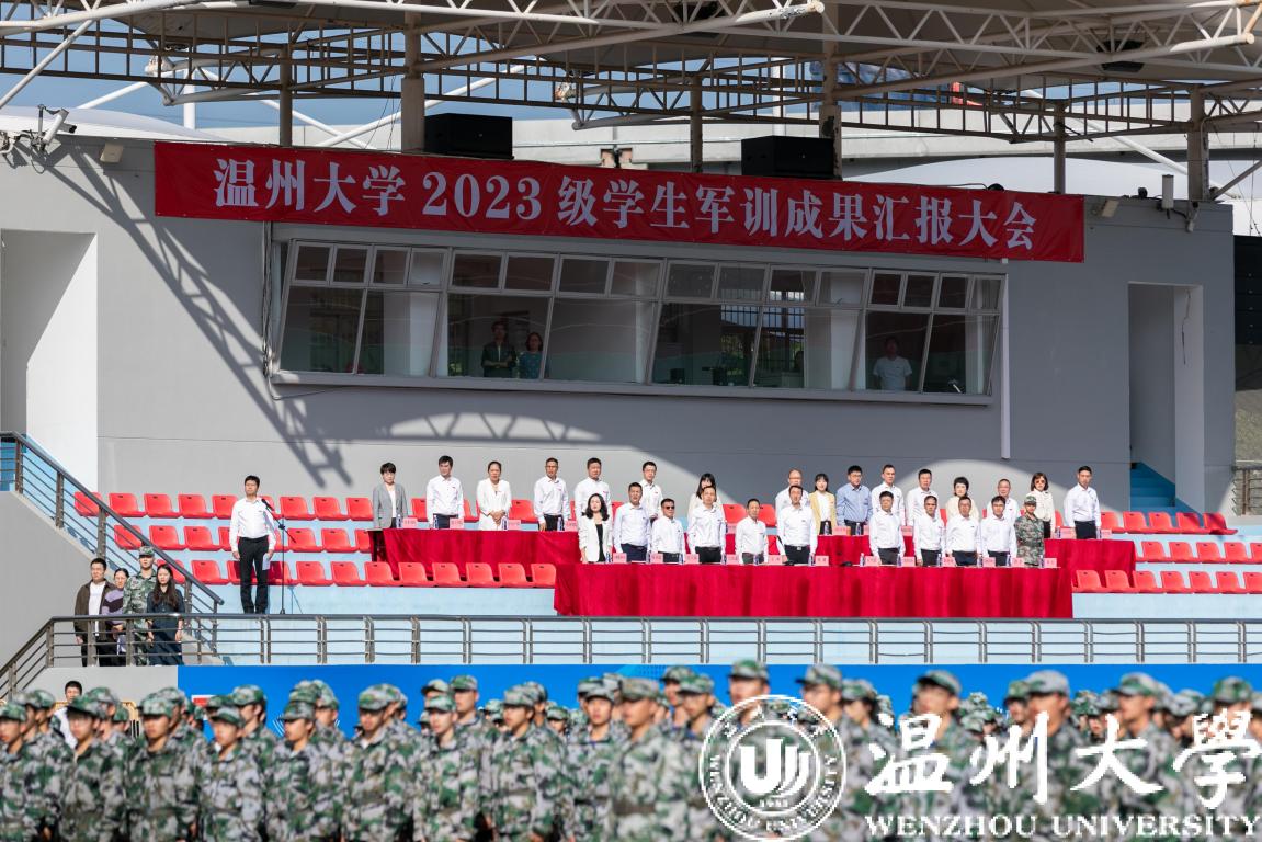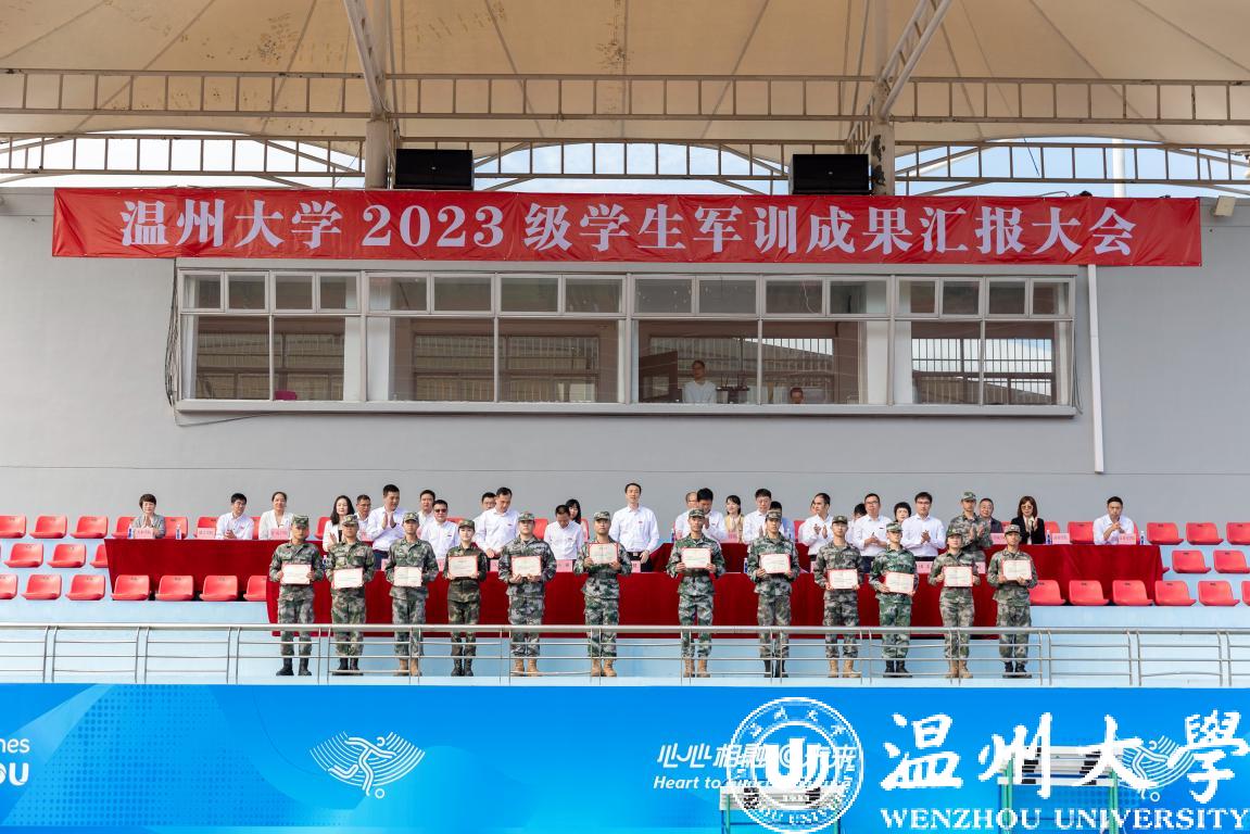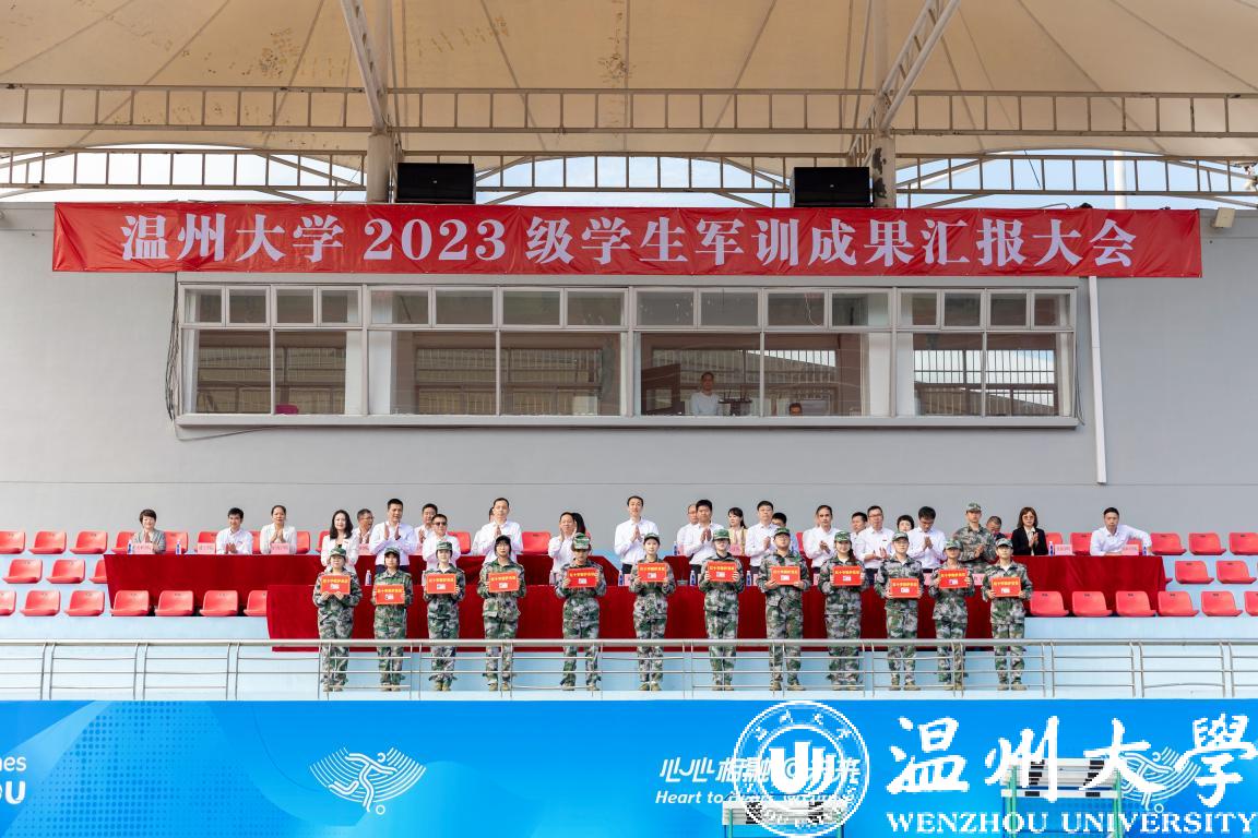 参与表演的学生精神饱满、雄健有力,展示了14天军训的成果,生动诠释了“求学问是,敢为人先”的温大精神,为军训画上了圆满句号。