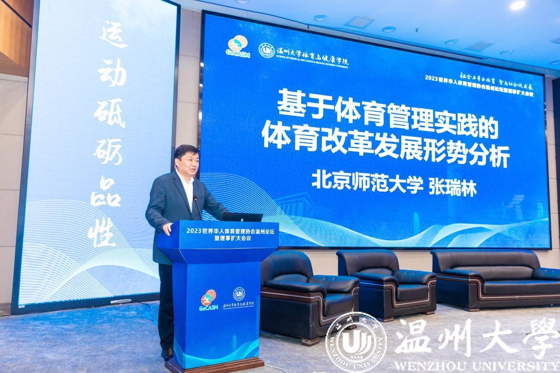 世界华人体育管理协会名誉会长、中国体育科学学会体育管理分会副主任委员、北京师范大学张瑞林教授指出,温州在社会力量办体育领域方面做出了非常突出的贡献,为其他地区推动体育产业融合与发展提供了温州模式、温州经验,为这次会议提供了非常重要的温州成果。