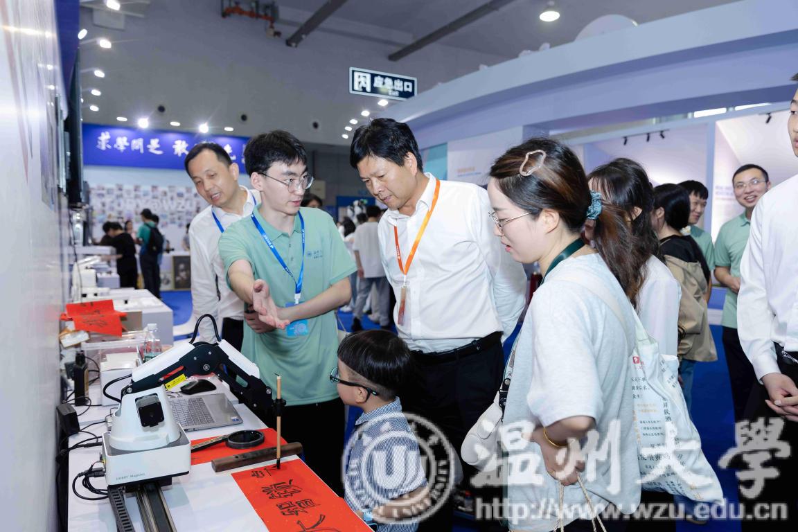 “快看!那个机器人会用毛笔写字,还有个机器人会下棋!”“哇,这辆赛车好酷!”……机电工程学院师生自主研发的魔术师书法机器人、Robocon投环机器人和疾风车队赛车,计算机与人工智能学院研发的动作捕捉系统,日本a片 元宇宙与人工智能研究院研发的VR展示-温州朔门古港及宋代园林和下棋机器人等作品科技感满满。