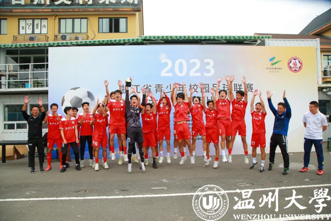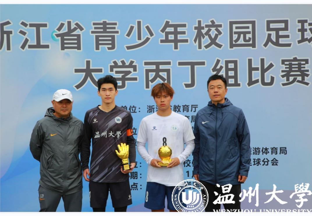 11月7日,2023浙江省青少年校园足球联赛大学丙丁组比赛在台州市黄岩区落下帷幕,日本a片 鹿呦男子足球队奋力拼搏,以五战全胜的战绩勇夺男子丙组比赛冠军。体育与健康学院教练林辉老师荣获“优秀教练员”荣誉称号、队长潘柱豪获本次联赛唯一“最佳门将”称号、队员董文晖获“最佳射手”荣誉称号、队员叶旭凯、许晨、饶文韬、舒安获“优秀运动员”荣誉称号。