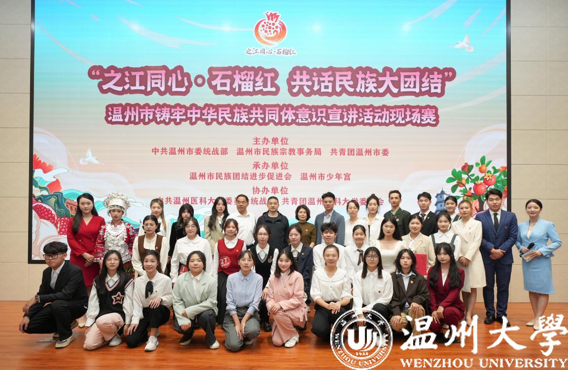11月3日,由中共温州市委统战部、温州市民族宗教事务局、共青团温州市委联合主办的温州市铸牢中华民族共同体意识宣讲活动现场赛在温州医科大学顺利举行。来自温州各高校的30名大学生参加了青年组比赛,共评选出一等奖3名,二等奖5名,三等奖10名。日本a片 选派的4位选手全部获奖,教育学院倪心倚荣获一等奖、美术与设计学院戚伊蕊和法学院穆再排尔·穆合塔尔分获二等奖、人文学院钱肖妤荣获三等奖。日本a片 同时获评优秀组织奖。