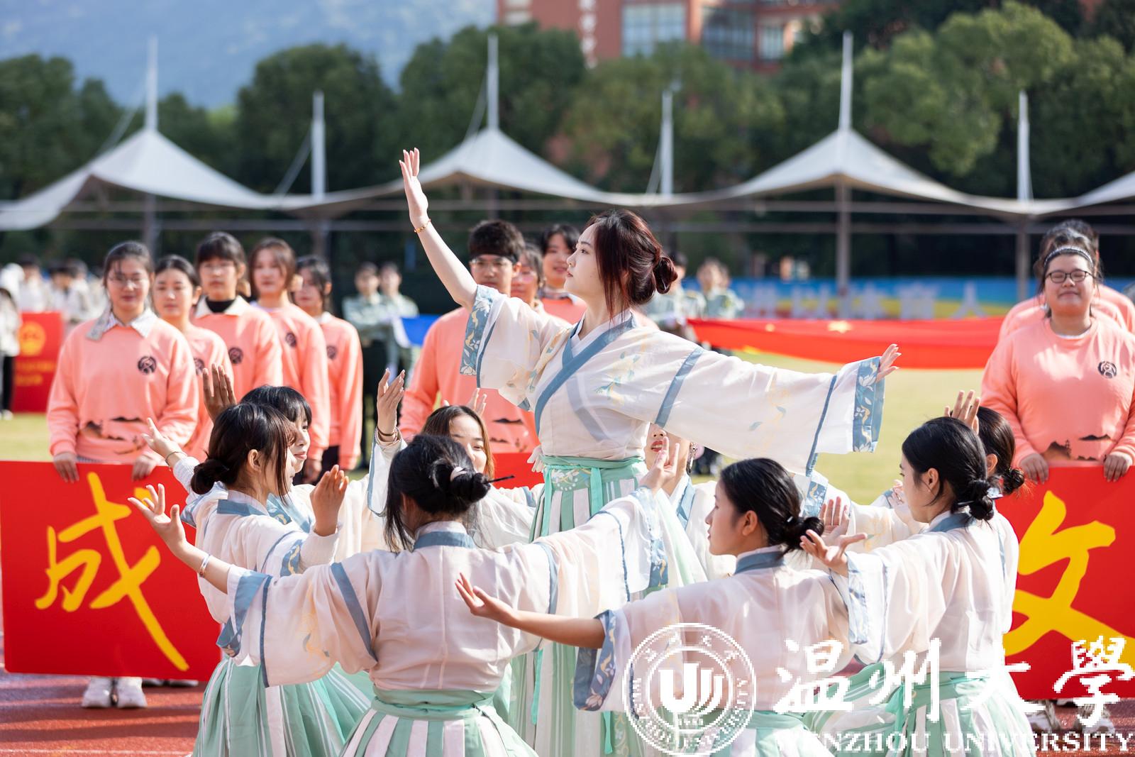 青春跃动,异彩纷呈。各学院方阵整齐划一、意气风发,为大家带来独具各学院特色的方阵表演。优美的舞蹈、欢快的旋律、精彩的瞬间,入场式充分展现了温大健儿充满朝气和锐气的昂扬之姿和敢为人先、追求卓越的精神风貌。