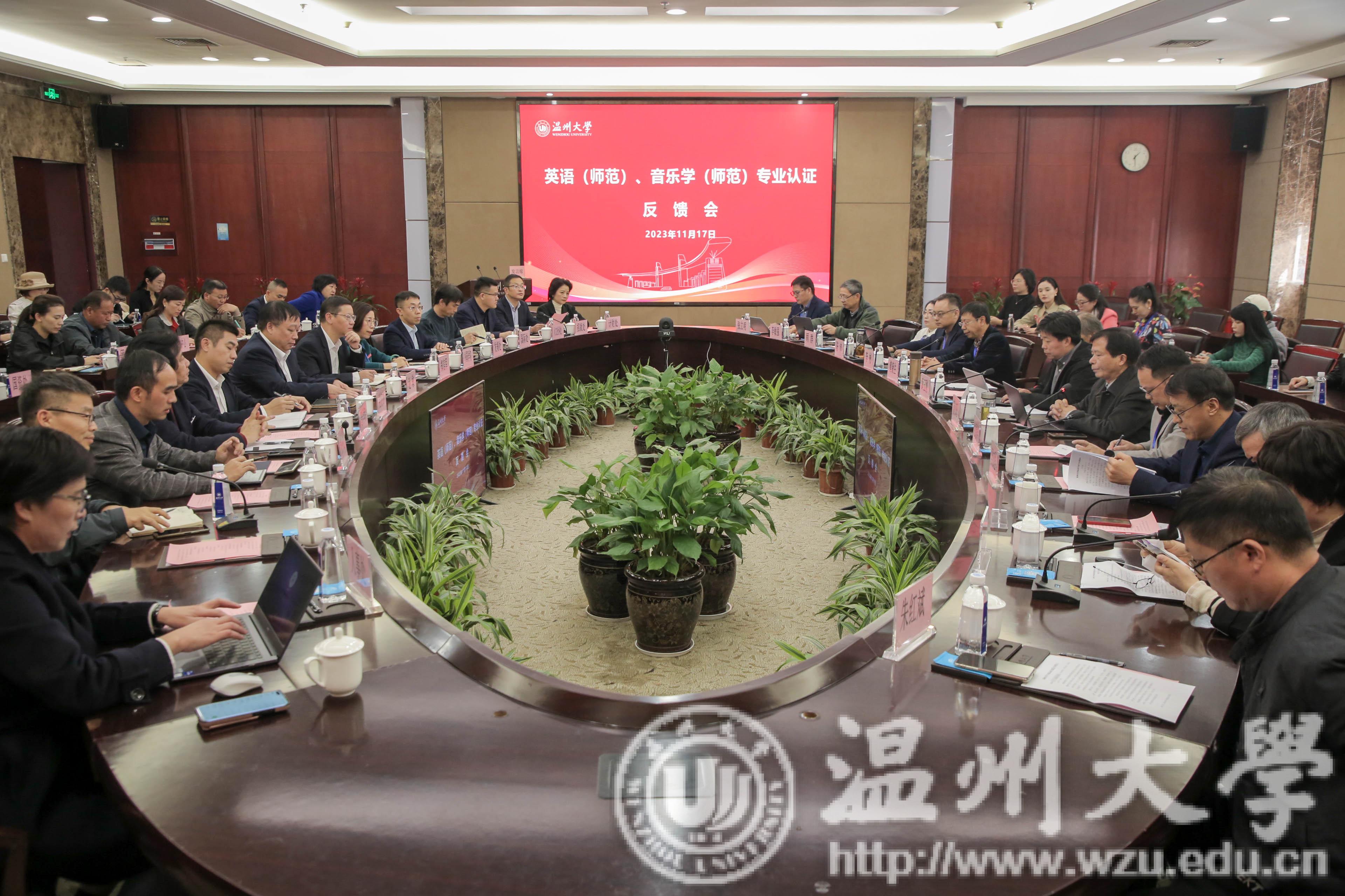 11月17日下午,在岩松堂白鹿厅,日本a片 召开了英语(师范)和音乐学(师范)专业认证反馈会。英语(师范)专业认证专家组由淮南师范学院原校长曹杰旺教授担任组长,福建师范大学兰春寿教授、宿州学院李加强教授、宁波大学郑春龙教授、上海市金山中学徐晓燕校长等为专家组成员,丽水学院朱红斌为项目秘书;音乐学(师范)专业认证专家组由南京师范大学原副校长傅康生教授担任组长,湖州师范学院李彬教授、浙江音乐学院陈沛教授、嘉兴学院顾群教授、浙江省教育厅教师工作处原调研员李敏强等为专家组成员,黑龙江教育评估院张立明为项目秘书。浙江省教育考试院评估部薛玉刚老师,校长赵敏,党委委员、组织部部长郑信军出席会议,相关职能部门负责人、两个专业所在学院的领导和教师代表、其他承担师范生培养学院代表参加会议。