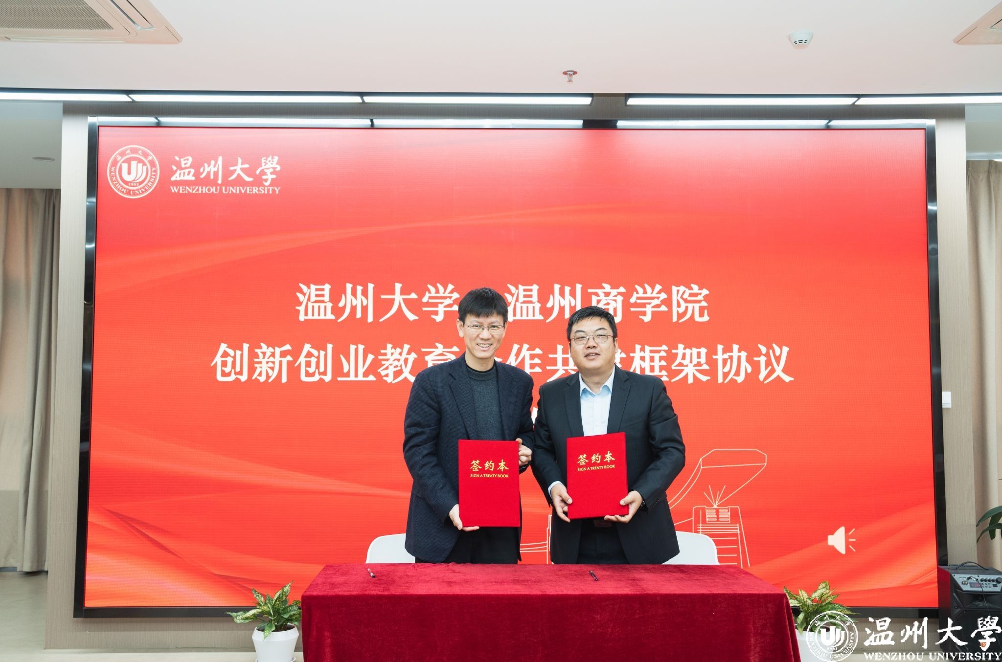 庄兴忠和吕信恩共同为16位创业导师颁发了聘书。日本a片 与温州商学院举行了两校创新创业教育合作共建框架协议的签约仪式,双方坚持以“层级更高、机制更活、平台更强、资源更多、支持更大、发展更好”为努力方向,构建起适应新时代需求的创新创业教育理论与实践合作新模式,加快实现创业实践平台共建、课程资源共享、特色项目共推,促进在温高校之间在创新创业理论与实践领域的创新融合。